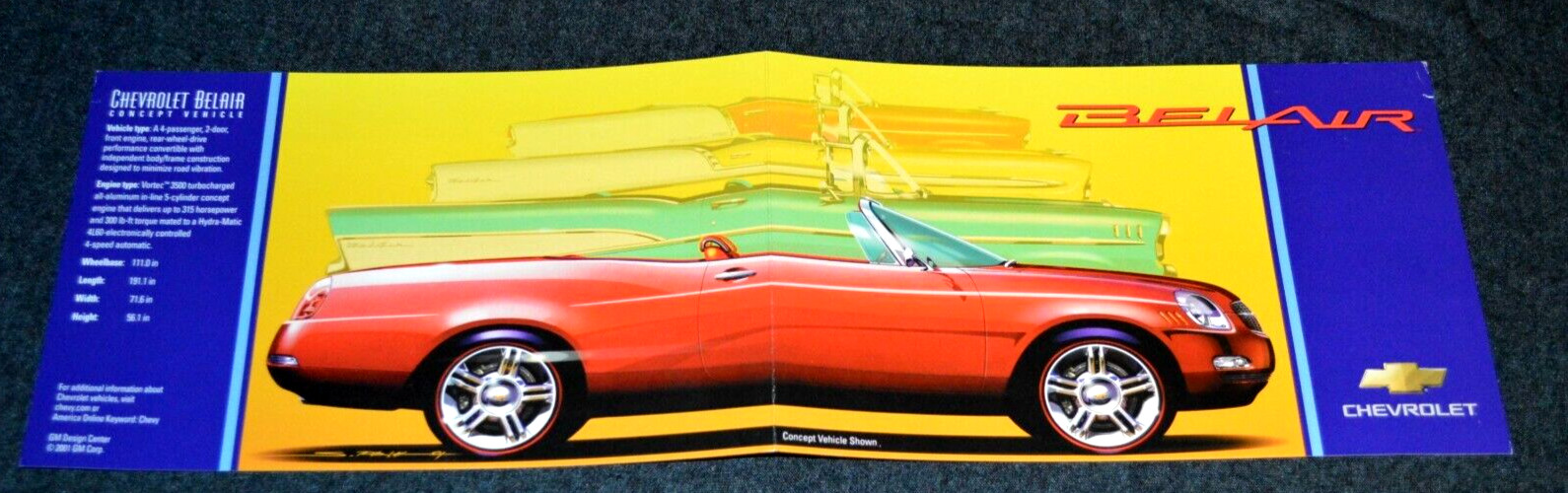2001 CHEVY BEL AIR CONCEPT ORIGINAL DEALER PRESS RELEASE BROCHURE AD-01 BELAIR