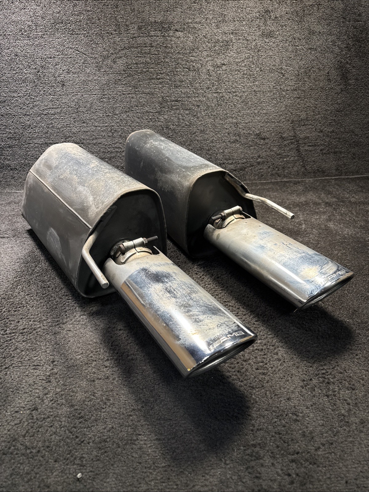 **ITEM DESCRIPTION: Used rear left and right s55 amg exhaust muffler set. Ready to use. No hardware is included, unless pictured. Please take a detailed look at photos** **MILES: N/A** **DAMAGES: No damage, normal wear consistent with age and miles.** **PART NUMBER: A2204902221 A2204902321** **DONOR VEHICLE: 2001 Mercedes S55 AMG** **VIN:** WDBNG73J31A187663 **Please make sure this part is a good fit for your vehicle before you purchase** **Terms of Sale** **We offer 30 day returns** **Shipping Information** **Additional charges to AK, HI, PR** **Additional charges apply to non US addresses** **Northwest Specialty Dismantling Inc.** **Thanks for looking!**