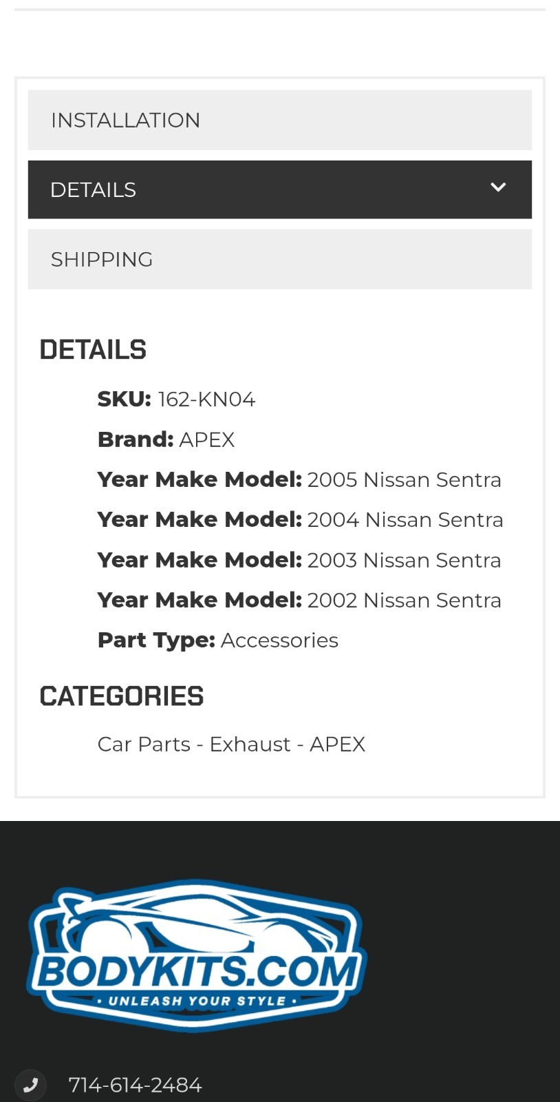2002-2005 Nissan Sentra Apexi Exhaust System