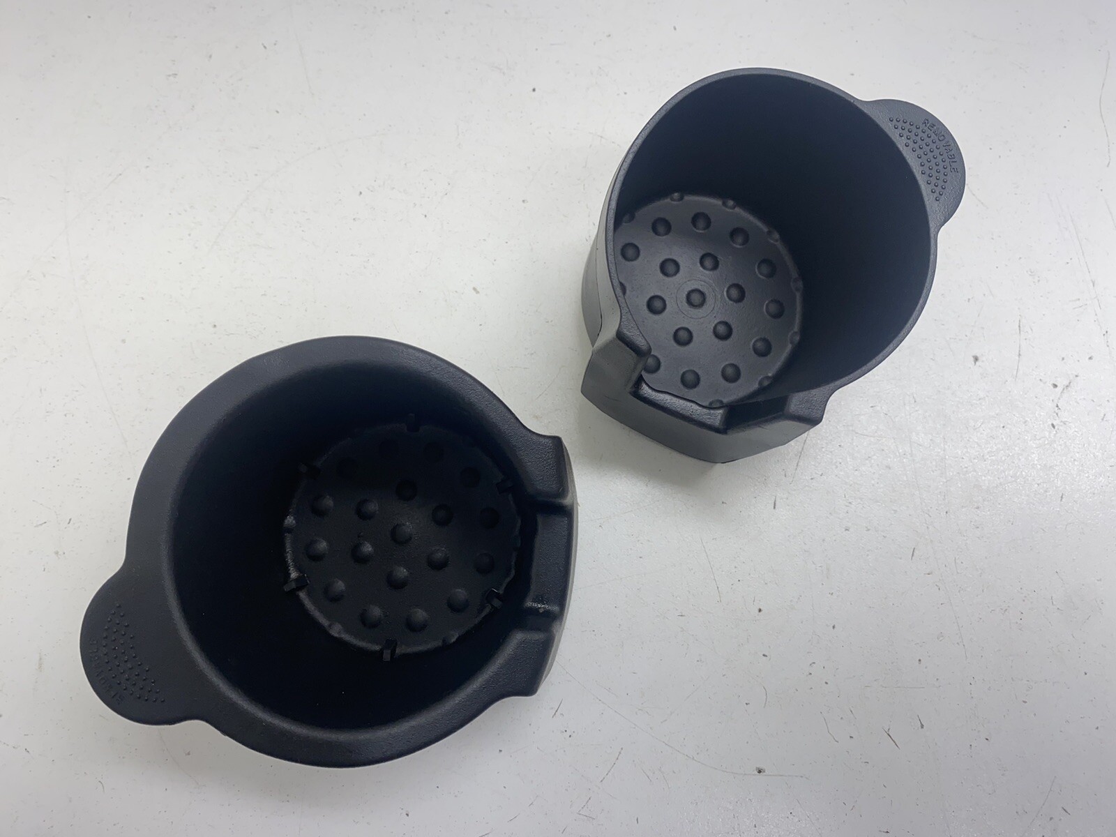 Up for purchase is a set of USED OEM front center console rubber cup holder inserts for an 02-07 Ford Focus. Cup holder inserts are in good, used condition with some cosmetic wear. This is the more common set that does NOT have oval openings on the side for the console installed lights to shine through. Please ask questions prior to purchase. **\*To prevent fraud, this item is stamped with a custom made heat stamp that melts a mark into an unseen portion of the part to prove that the part came from me. Returns for items damaged during shipping MUST bear this logo or else the claim will be dismissed. Any alteration to the marking will also cause the dismissal of a damage return. If you have any questions about this, please contact me prior to purchase.**