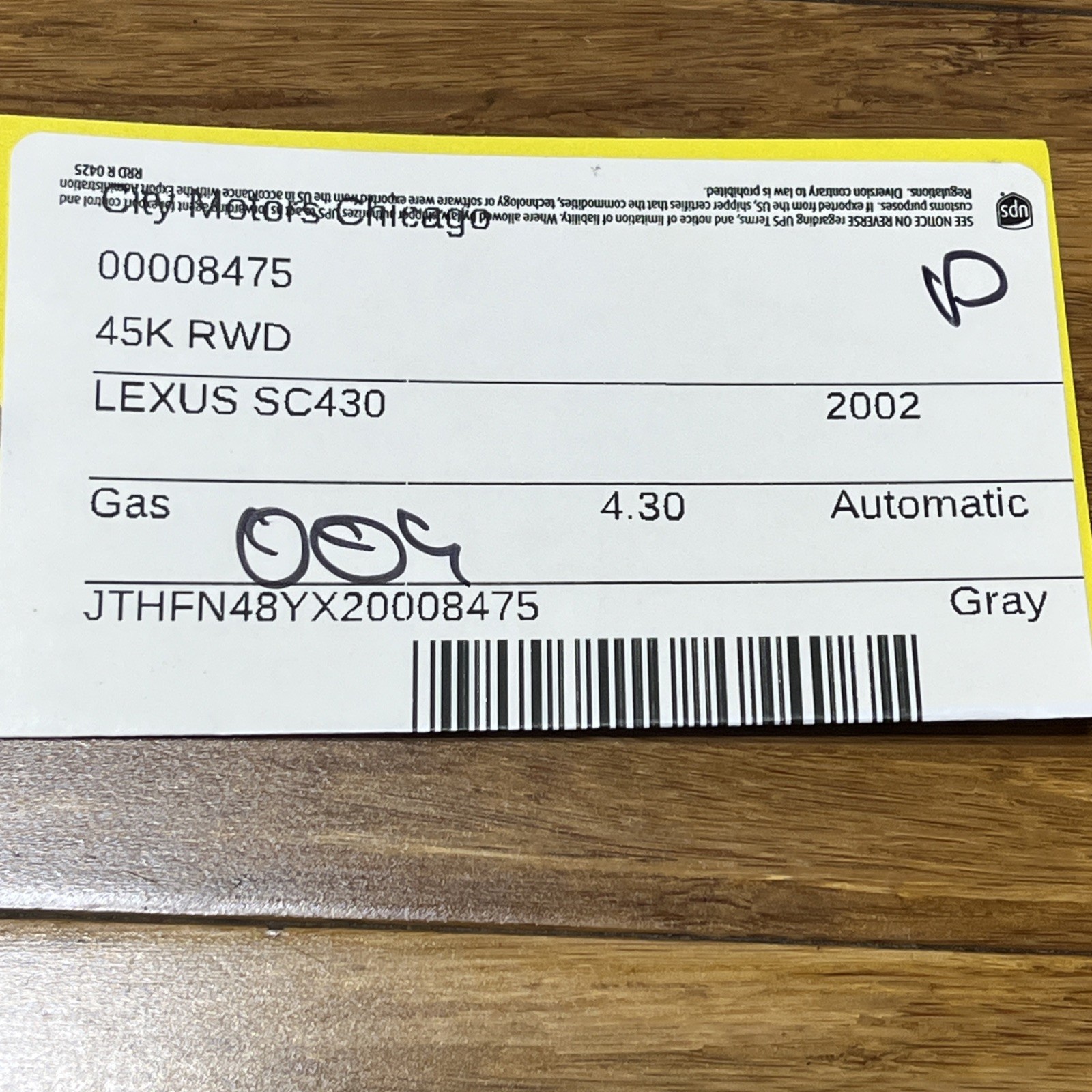 - VIN: JTHFN48YX20008475