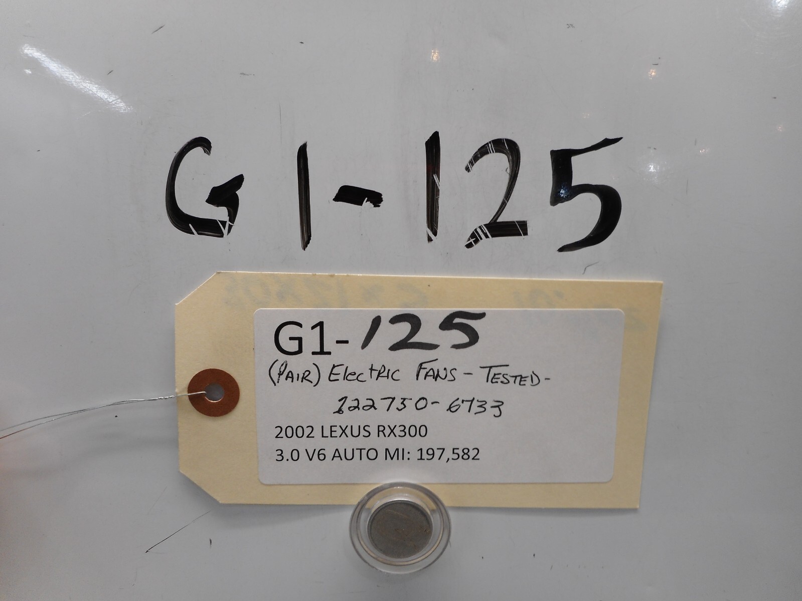 2002 LEXUS RX300 PAIR ELECTRIC FANS TESTED 122750-6733 3.0 V6 AUTO MI: 197,582 VIN: JTJGF10U320144566 EXT: INDIGO INK PEARL BLUE INT: IVORY G1-125 \*WE DO OUR BEST TO MAKE SURE THAT THE MODELS WE LIST ARE CORRECT, HOWEVER, WE DO RECOMMEND THAT YOU RESEARCH ON YOUR OWN TO MAKE SURE THAT THIS IS THE CORRECT PART\* \*\*THIS PART MIGHT FIT OTHER MODELS, YOU ARE RESPONSIBLE FOR MAKING SURE THIS IS THE PART YOU NEED PRIOR TO PURCHASING\*\* \*\*\*WE LIST ONLY THE MAKE/MODEL/YEAR OF THE VEHICLE THE PART CAME DIRECTLY OFF OF. YOU ARE RESPONSIBLE FOR VERIFYING THE COMPATIBILITY. PLEASE MATCH PART NUMBERS BEFORE BUYING.\*\*\* \*\*\*\*THIS IS A USED PART. IT WILL SHOW SIGNS OF WEAR SUCH AS SCUFFS AND SCRATCHES. PLEASE REVIEW THE PICTURES CAREFULLY AND READ THE CONDITION AREA FOR SPECIFICS. ALL PARTS ARE SOLD AS IS. ANY MISCALCULATIONS UPON REINSTALLATION, ELECTRICAL, MOTOR ISSUES, ETC. MIGHT AFFECT THE PERFORMANCE OF THE PART. BECAUSE OF THIS, WE DO NOT OFFER ANY WARRANTY, NOR DO WE ACCEPT ANY LIABILITY OR RESPONSIBILITY FOR FUTURE PERFORMANCE.\*\*\*\* \*\*\*\*\*ALL OF OUR PARTS HAVE BEEN INSPECTED, WIPED DOWN AND IN WORKING CONDITION AT THE TIME OF SALE UNLESS OTHERWISE NOTED. SIGNIFICANT DAMAGE WILL BE NOTED. ANY EXTRA PARTS SUCH AS CLAMPS, HOSES, BULBS, FUSES, RELAYS, HARDWARE ETC, MAY BE SHIPPED WITH THE PART AS WELL, BUT ARE NOT GUARANTEED TO BE IN WORKING CONDITION.\*\*\*\*\* \*\*\*\*We don't like buying items that only show a stock photo so we try to never use them on our items. What you see in the picture is what you will be receiving. Please review the pictures to see the exact condition of the items.\*\*\*\* \*\*\*We only ship to verified US addresses within the lower 48 states. We do not ship to P.O. Box APO/FPO. We do not ship to any location outside of the lower 48.\*\*\* \*\*\*FOR ITEMS LISTED AS LOCAL PICK UP ONLY PLEASE CONTACT US FOR POSSIBLE SHIPPING ARRANGEMENTS AND COST\*\*\* \*\*We do not offer any returns or exchanges.\*\* GOD BLESS THE U.S.A.