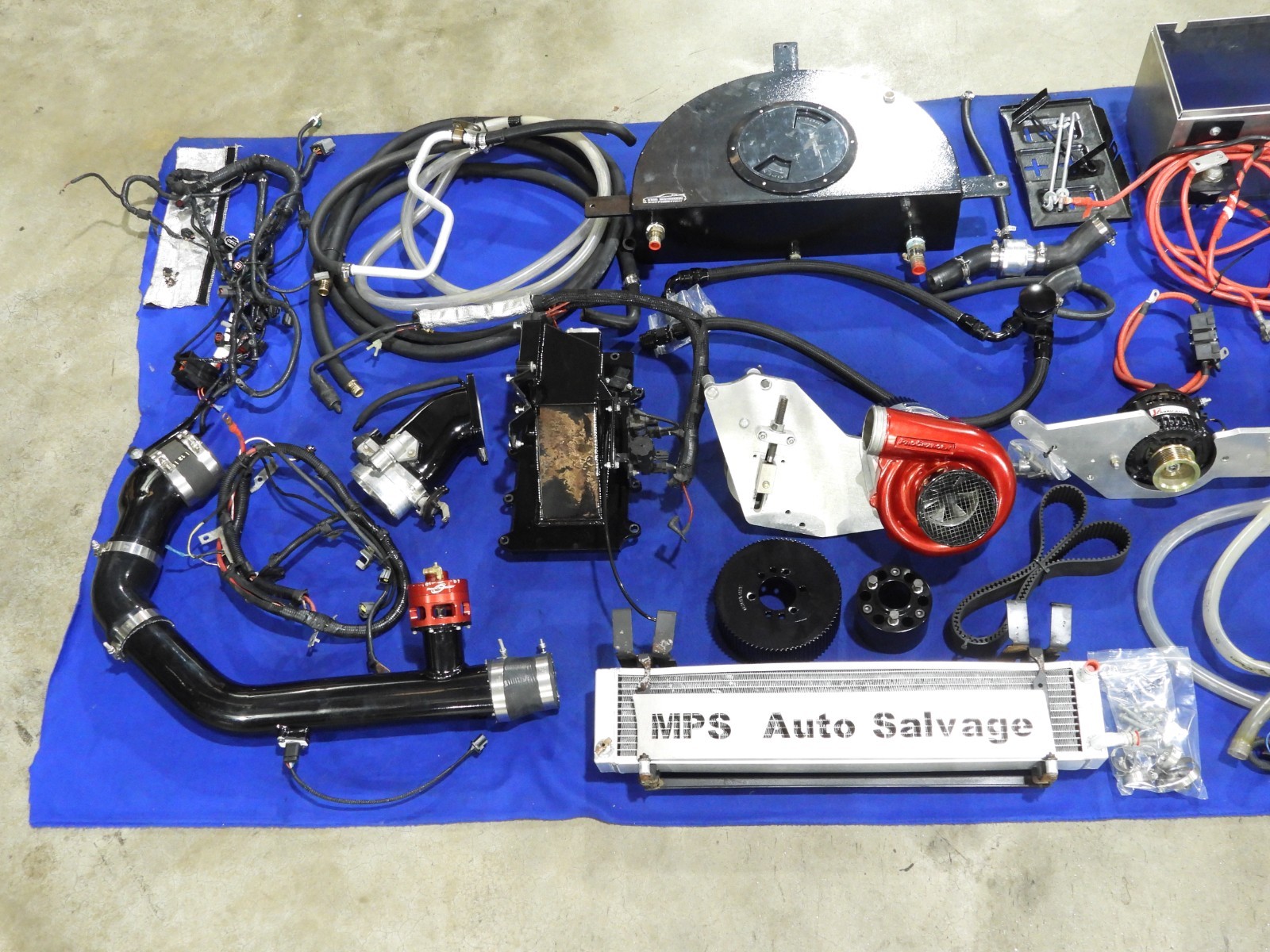Item Description: 2003-2004 Ford Mustang Cobra ProCharger F-1A Cog Race Kit 18-30+ PSI Boost. Will come with everything when purchased new, and a lot of extra parts you would have to purchase separately. This will come with a 2003-2004 Cobra modified (for the ProCharger) injector engine harness, battery harness, power steering reservoir with modified lines, thermostat housing with hoses, Gauge with steering wheel cover pod, battery relocation box, Ice chiller box, & a smaller COG pulley with belt. All pulled from the 2003 Cobra shown in the video. Will work on the 1999-2001 Cobra or 2003-2004 Mach 1, but you will need the 2003-2004 Cobra lower intake, cooler, and timing cover. You will be getting all the items pictured. Any questions please feel free to ask. We look forward to your business. Any Tax, duties, or brokerage fees are the buyers responsibilities. We process & pull paypal orders Monday - Friday at 10 am EST. If you place an order after this time, it will not be processed until the following BUSINESS day. We are closed on Saturday and Sundays, these are not business days. We use the most economical carriers for you depending on the item & your location. We have pick ups from our location Monday - Friday throughout the day. Freight tracking numbers are available upon your request. Contact Us: Please use the contact seller directly through the listing, and your email will be answered in a timely manner. About Us: We have been serving the late model Ford Mustang community since 1986. We have over 30,000 square feet of Mustang parts under roof! We have the most knowledgeable staff in the industry. Specializing in driveline conversions, or any project, rebuild, or restore requiring those hard to find New & Used Mustang parts. All members of our staff are hands on! All of our vehicles are stored inside before and after dismantling!!
