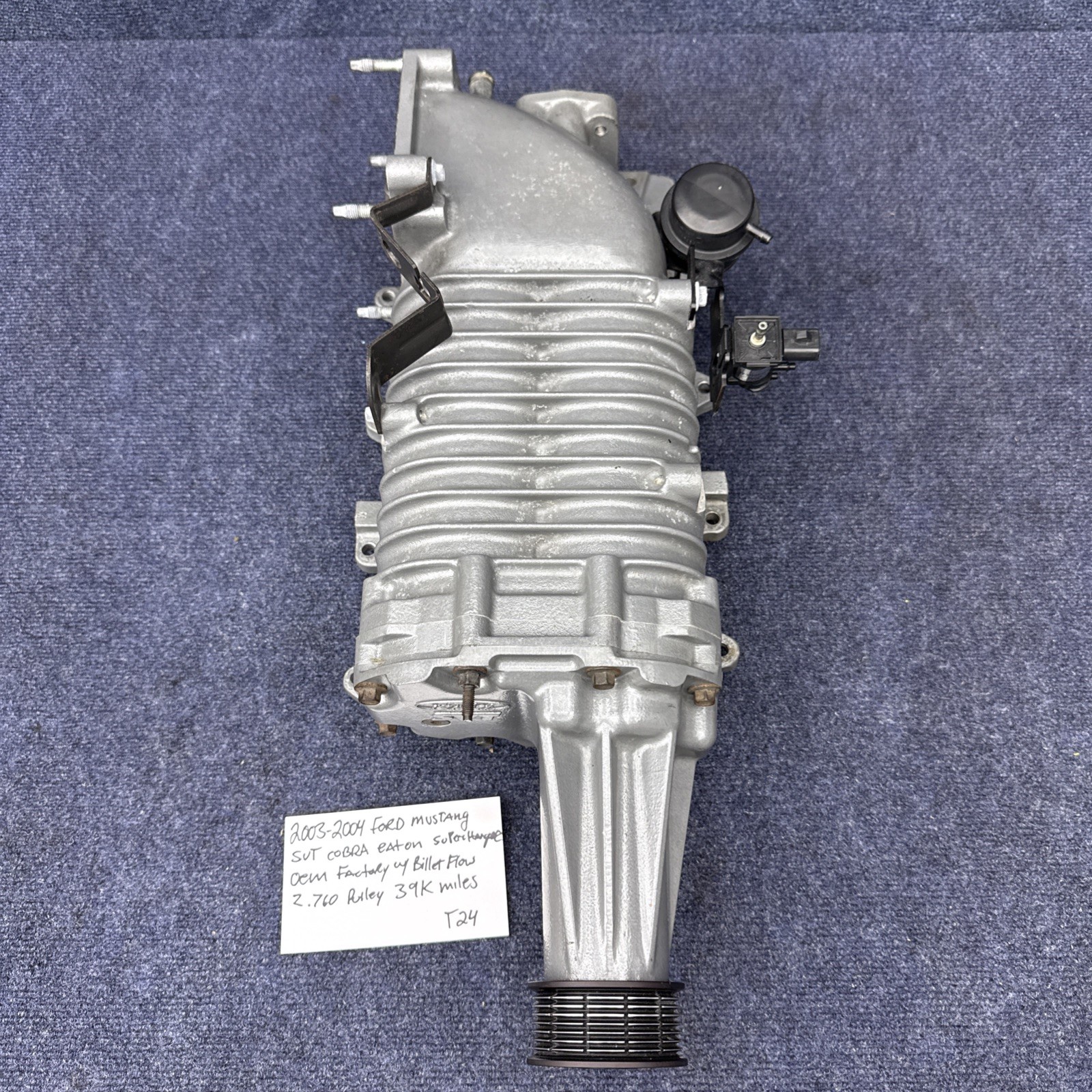 **This is a Ford factory OEM part removed from a 2003 Ford Mustang SVT cobra** **This Eaton supercharger has 39,000 miles** **Was in perfect condition** **before it was removed** **Upgraded to** **VMP** **Comes with everything in pictures** **Included as the billet flow** **2.760** **supercharger pulley** **.**