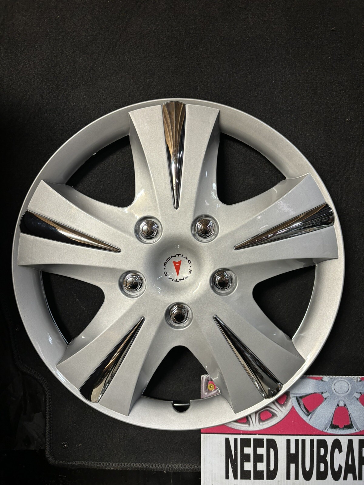 **16” silver /chrome inserts, hubcaps with Pontiac emblem 2003-2009 Hubcap Used good condition , and should will mount well.. these-will fit all year vibe with original and aftermarket black steel wheels….16” and fits steel wheel. Pontiac writing and emblem is Vynal Will fit with Gm v v t motor. 2009 and 2010** **These have clips on back of caps.. in nearly new condition with minor shelf ware if any.** **Pics of vibe with caps on it.** **You are getting a pair of 2 mint used,** **Not oem gm caps..** **Way cheaper then original covers…** **You are purchasing a set of 2 hubcaps for 95.00 shipped free in lower USA out of country shipping charges apply..**