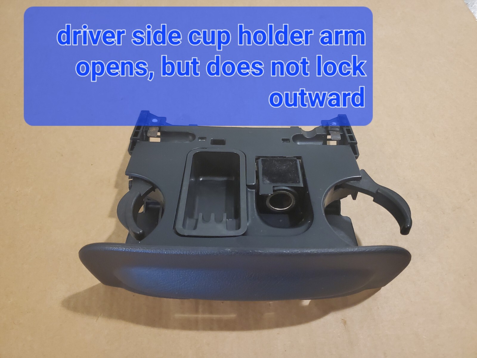 Years listed are suggested likely fit. Unsure specific year range for the interior color code N. Outlet worked upon testing, but the spring feature does not work on it, so it will have to be lifted up to use. this assembly functions as it should with the hinges intact, but note the driver side cup holder arm does not lock outward. It can be opened to put a drink in there though. Assembly has been cleaned, may show minor residual signs of use. Please match second letter "N" on the interior color code portion of your VIN tag to this for best results. Comes with a 12v outlet cover type plug, but not a lighter element. Sold as is. Ships via USPS ground advantage or similar service. Seller Internal Inventory reference 0719PA242