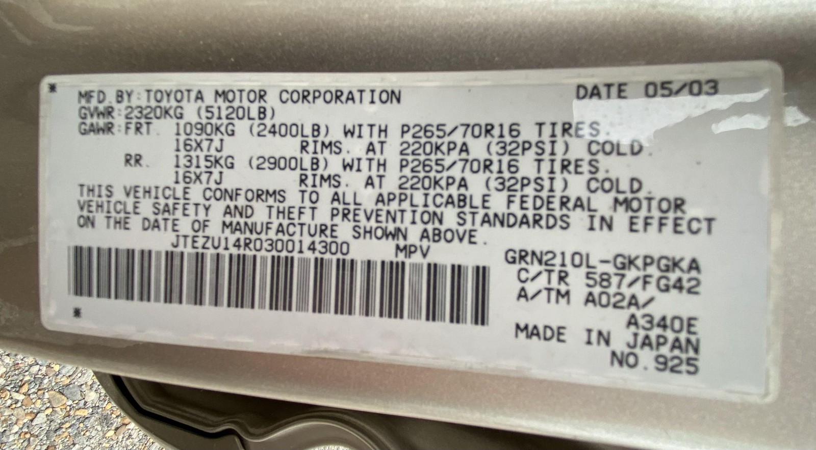 2003 Toyota 4Runner Mud Flaps Mud Guard LH and RH Rear OEM 7662635190 7662535190