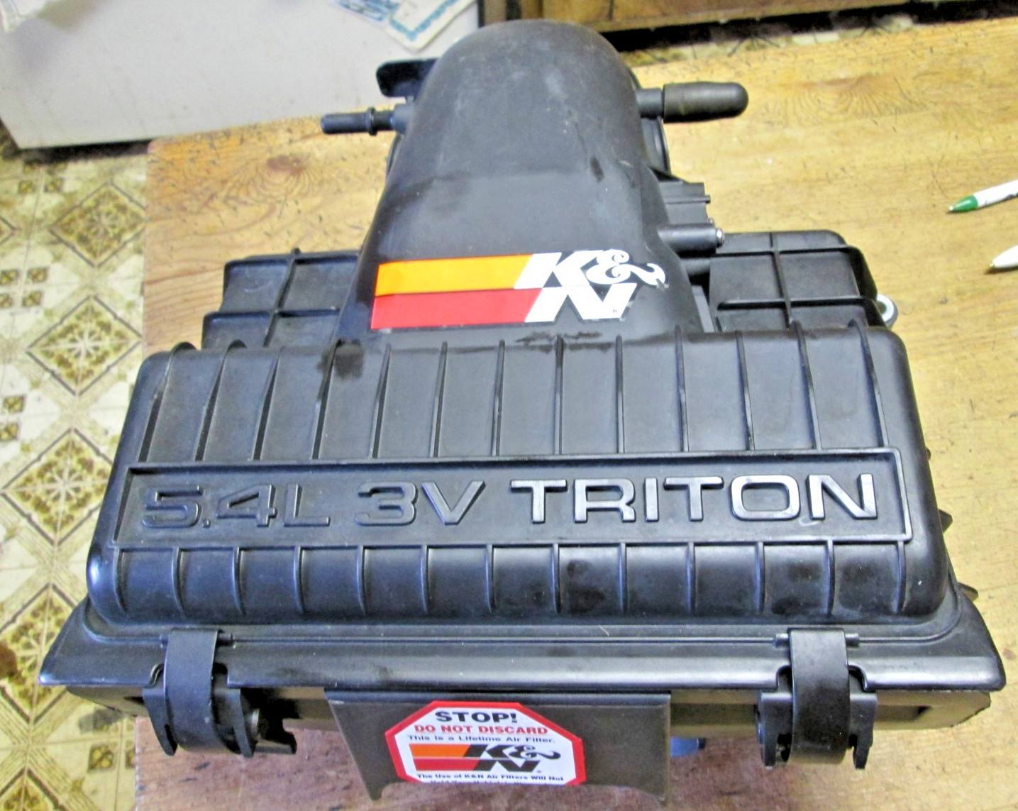 used 2004-08 ford 5.4 3v triton engine air cleaner box, with K & N air filter . item has been cleaned oiled ready for use , no damage or repairs. come with 1/2 full can of K & N filter oil 6.5 oz. size