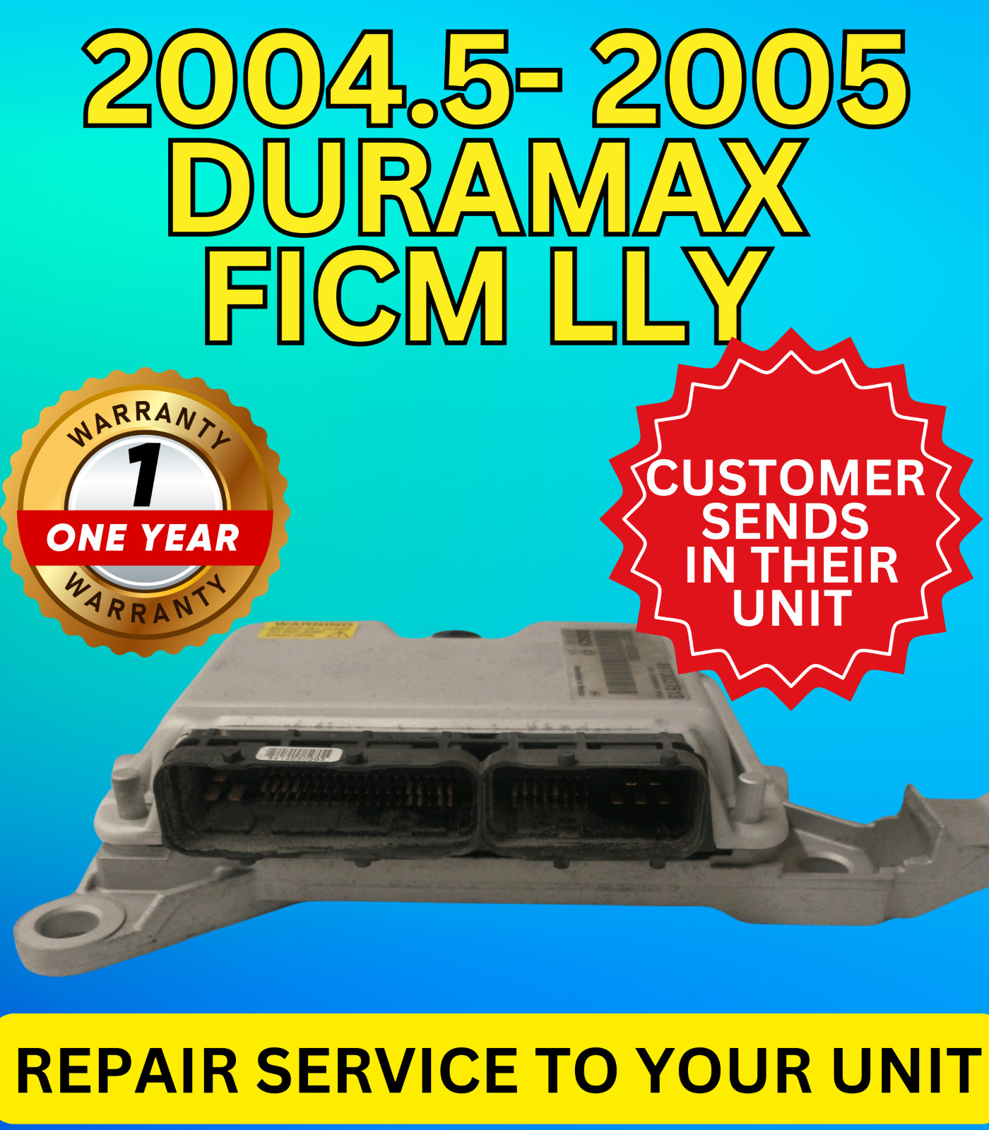 **Hey! Thanks for stopping by!** **\*\*\*\*Please note that we have a fast turnaround time about 2-4 days max with this repair service. Please message if you have any questions- Thanks!** 2004-2005 Chevy Silverado GMC Sierra DURAMAX 6.6 FICM LLY FICM 8973037513 8973037511 REPAIR SERVICE TO YOUR UNIT!!! - **Customer will send in their unit for us to repair. Please know that if your unit is burned or smells burned it may not be repairable. If it is not repairable we will call the customer right away with a picture of their unit. Customer will then receive a refund of their repair service minus a $35 handling charge** - WARRANTY**: YES. Every****customer will receive a one year warranty on the repairs we make to the unit. If someone fixes the unit after us, the warranty does not apply and the customer will have to purchase another repair service.****Warranty is for replacement of the parts only. Altered, abused, or improperly installed items will void the warranty and are not returnable. Warranty is not transferable. Warranty does not cover shipping, labor, towing, rentals, storage, legal fees, lost wages, or any other incidental fees.** - **FREE SHIPPING:YES, we provide free shipping after the repair back to the customer and we ship anywhere in the United States through USPS or UPS. Customer will have to ship their unit to us and can choose whichever courrier they like ( SPEEDEE, FEDEX, USPS, UPS, etc). Please note that shipping back to the customer can take up to 5 business days depending on where you live in the country. Arrangements can be made if you need a faster shipping method** - **Please Ship to the Following Address: Ace Score 123 West Sarnia Street Winona, MN 55987** - **What to include with the unit when you send it in: Name, Address, Phone Number, Email Address, and Notes of what is wrong with your unit** **THIS REPAIR SERVICE WILL FIT THE FOLLOWING BELOW:** # 2004 - 2005 Chevy Silverado 2500 6.6L Diesel LLY 2004 - 2005 Chevy Silverado 3500 6.6L Diesel LLY 2004 - 2005 GMC Sierra 2500 6.6L Diesel LLY 2004 - 2005 GMC Sierra 3500 6.6L Diesel LLY 2004 - 2005 Chevy Kodiak 4500 6.6L Diesel LLY 2004 - 2005 Chevy Kodiak 5500 6.6L Diesel LLY 2004 - 2005 GMC Topkick 4500 6.6L Diesel LLY 2004 - 2005 GMC Topkick 5500 6.6L Diesel LLY 2004 - 2005 Hummer H1 6.6L Diesel LL A little about us: We have over 35 years in the Automotive Electronic Field and have repaire over 50,000 units for salvage yards, companies, and people like you! You can guarantee to purchase with confidence! We are also a family run business! David taught everything he knows to his daughter Natalia. When talking with us you can expect direct communication from either one of us! David is also a retired veteran and served with the National Guards for over 25 years! If you have any questions, ask! We will answer as fast as possible! Thanks for supporting our family business where you can buy with confidence! Natalia Ruberg and David Ruberg