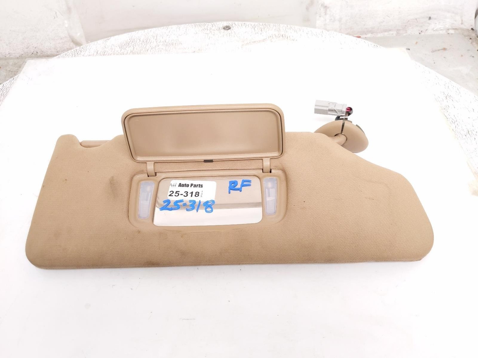 * * * **Part Number(s):** 83230-SDB-A03ZB * * * **Part/Notes:** PASSENGER SUN VISOR - - item is a little dirty Color: TAN * * * **Fitment:** ``` Sun-Visor - Honda (83230-SDB-A03ZB) Without sunroof, with lighted mirror, ivory. All, ivory. With sunroof, 3.0l, ivory. 2007 Honda Accord EX, EX-L, Hybrid, LX, Special Edition, Value Package, 2.4L L4 - Gas, 3.0L V6 - Electric/Gas, 3.0L V6 - FULL HYBRID EV-GAS (FHEV), 3.0L V6 - Gas, 2006 Honda Accord EX, Hybrid, LX, LX Special Edition, Value Package, 2.4L L4 - Gas, 3.0L V6 - Electric/Gas, 3.0L V6 - FULL HYBRID EV-GAS (FHEV), 3.0L V6 - Gas, 2005 Honda Accord DX, EX, Hybrid, LX, SE, 2.4L L4 - Gas, 3.0L V6 - Electric/Gas, 3.0L V6 - FULL HYBRID EV-GAS (FHEV), 3.0L V6 - Gas, 2004 Honda Accord EX, LX, 3.0L V6 - Gas, ``` * * * Warranty for mechanical parts such as engines, transmissions, etc, are only valid if item is installed by a repair shop or facility.    Please ask or check description for color specification. -All items are used and have normal wear and tear. Parts are NOT to be assumed that they are in absolute perfect cosmetic condition unless specifically stated. -Unless item description states otherwise, all parts are from USA model vehicles with a left hand drive setup. -Items described as driver or passenger side refer to US made specifications, or left hand drive vehicles. For clarity, passenger side refers to right side when sitting in vehicle, and driver side refers to left side when sitting in vehicle. -Hardware such as bolts and nuts may not be included unless specifically noted. * * * **Payment & Shipping** * * * -Because shipment times are estimated by carriers, we are in no way responsible for shipments which do not arrive on time. -Shipments may or may not require a signature as they are delivered. -Any international customs fees, duties, taxes, etc.... must be paid for by the buyer. Please be aware of this and ask us for the shipping price before your purchase. * * * **Returns** * * * -All returns for exchange must be made within 30 days of item being received by customer unless otherwise stated. -We can not refund items being returned which are damaged or lost by carrier. -Customers must contact seller before return in order to receive an RMA(Return Merchandise Authorization). -Prior to purchasing any items, customers must make sure they are ordering what they want/need. Returns for incorrectly ordered parts may or may not be subject to a partial deduction fee. * * * **Contact** * * * -Life is life and issues arise; people make mistakes. Please contact us before leaving a negative feedback and we will do our best to assist you with any mistakes that could have been made on our end, or yours. -Thank you and have a blessed day!