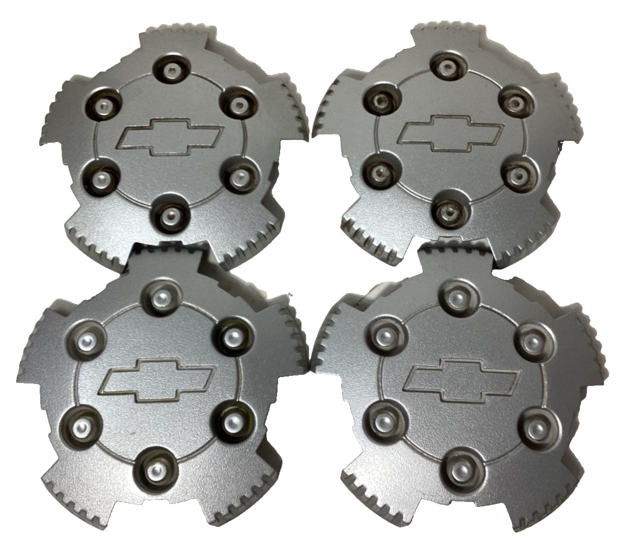 **2004-2008 Chevrolet Colorado** Wheel Center Cap Set of 4 Silver Part # 9593994 They Are In Good Condition One Of Them has a Broken Mounting Tabs As Pictured They Could Use Some Paint Few Peeling Spot **OEM** **Removed From** 2005 Chevrolet Colorado _Returns accepted. \*We don't have a return policy for items bought with a purpose to diagnose your vehicles problem and return the items after. If mistakes are made on buying the wrong item, buyer has to cover BOTH shipping expense in order to receive refund._ _**The compatibility we provide is accurate although may not be guarantee 100%. We strongly recommend that you match parts with yours, or contact your local dealer.**_ SOME VEHICLES REQUIRE ELECTRONICS TO BE PROGRAMMED. YOU ARE RESPONSIBLE TO MAKE SURE THIS IS THE CORRECT PART FOR YOUR VEHICLE **PLEASE NOTE THAT BEFORE PURCHASING IT IS THE BUYER'S RESPONSIBILITY TO ENSURE THAT THIS ITEM IS THE CORRECT PART FOR THEIR VEHICLE. THIS ITEM WAS INSPECTED AND IS IN WORKING CONDITION** **Parts that require flashing and/or programming may NOT be returned unless accompanied by a mechanic/dealership receipt or ticket with the customer's VIN # and name and signature of mechanic performing programming which states a problem with the part** THIS IS A USED PART THE PICTURE IS THE ACTUAL PART ALL MY ITEMS ARE GUARANTEED TO WORK ON TIME OF REMOVAL AND LISTING APPLICATION SO PLEASE BUY WITH CONFIDENCE.     txzj pxzj6183 txzj-11 txzj58 txzj115