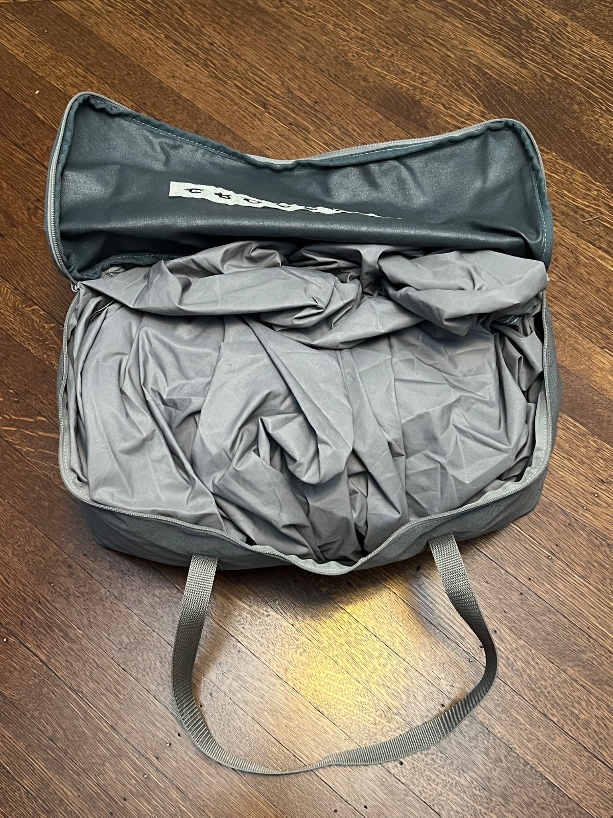 The product is a genuine OEM factory car cover for the 2004-2008 Crossfire Coupe, designed in a grey color with full coverage protection. It includes a storage bag for convenient storage when not in use. This accessory is specifically made for the Crossfire model, ensuring a perfect fit and quality protection for your vehicle.