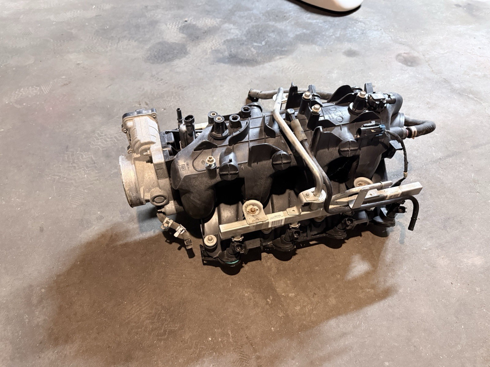 Loaded intake plenum off low mileage 154k mile 2006 gmc sierra 5.3 comes with fuel rail all 8 injectors and electronic throttle body