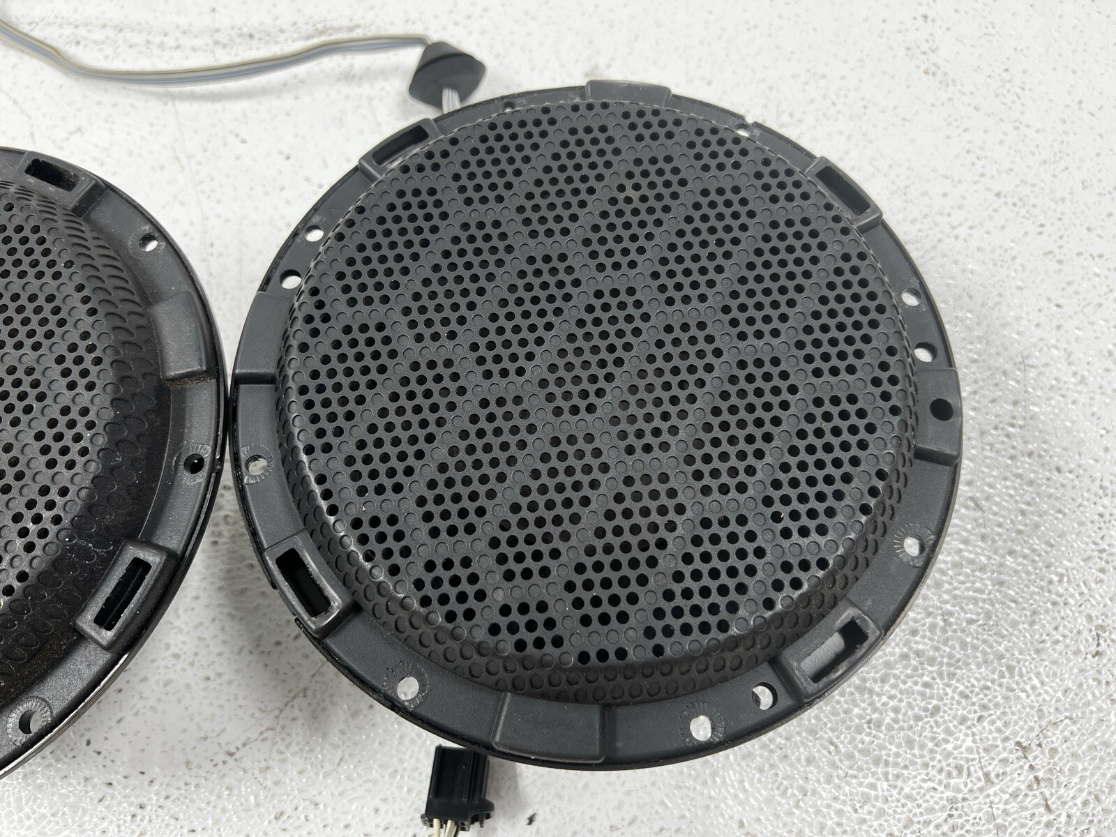 2005-2009 OEM Ford Mustang Door PanelsFactory Upgraded Shaker Speakers Left and Right speakers. Trim not-included. 1 quantity is for both Lh and Rh speakers. Matching pair - Good condition. Mounting tabs intact. **General Information:** This part is used and has been removed with care. Please check out the pictures. **Warranty Information:** This used item comes with a 90 Day Warranty (Parts ONLY - NO Labor). **What the warranty covers:** Parts that arrive defective/damaged/incorrect or become defective within the warranty period. **Not included:** We do not refund/include or warranty any other expenses including labor, towing, diagnostics or other expenses due to an item being damaged, incorrect, improperly installed or defective.