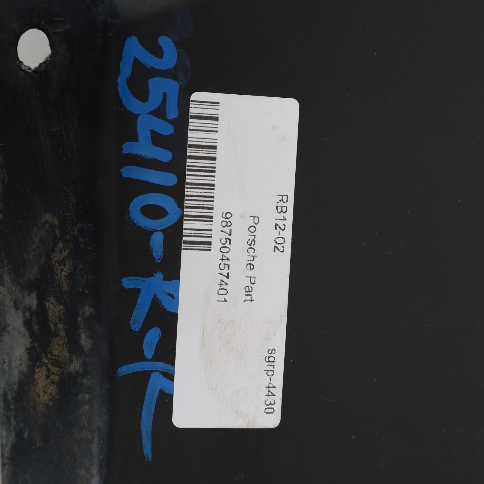 Item Description ### 2005-2012 Porsche Boxster Cayman 987 Right Rear Splash Shield OEM Used ### - Brand: **Porsche** - Color: **Black A1** - Condition: **Used** - Year: **2007** - Model: **Boxster** - Stock Number: **25410** - Make: **Porsche** - Manufacturer Part Number: **98750457401** - Storage Location: **RB12-02** - VIN \#: **WP0CB29807U730800** - Chassis: **987** - Country/Region of Manufacture: **Germany** More Items! Item Specifics Item Specifics About US Shipping Returns Thank You #### Item Specifics ``` InterchangeSome items do interchange easily but please do as much research as possible before you purchase. We include as much information and interchange in our listings as possible. Programming Most or all European electronic devices (Stereo, ECU, Modules, etc.) need to be programmed. These items are not "Plug and Play". These items need to be coded to the vehicle they are being installed into. They require specific tools or information to program. Please be aware of this before purchase. Radio / Stereo Most radios require a "security code" or "password" to unlock the unit for use. We do not provide or have access to these security codes and most dealers do not offer the codes over the phone. You must install the stereo unit into the vehicle and take the vehicle to a manufacturer dealer to be unlocked. ``` About US #### About US ``` A Place You Can Trust We know that the auto dismantling industry has a reputation of overcharging and up-selling nonessential parts. Specialized German Is Your Used Parts Specialist We are one of the largest, most experienced, and most organized BMW and Porsche recycling facilities in the world -- (over 10,000 vehicles dismantled). Although BMW and Porsche parts are our specialty, we also carry a large inventory of used parts for other European vehicles.Specializing In BMW And Porsche Parts OnlyWe offer you our vast inventory of used parts at the lowest prices anywhere, saving you big on all of your used parts needs.Whether you need a used engine or just a used window crank, we're here to help. Remember... when it comes to your BMW and Porsche, our goal is to put you back in the driver's seat. And with over ten thousand vehicle's dismantled for parts, that goal is a reality.Putting you back on the road is only half the story. We know that keeping you there is just as important and we make customer service after the sale just as important as getting the sale in the first place - if not more important !Experienced Used Parts ExpertsOur staff of highly trained experts are committed to giving you the best possible customer service experience. Specialized German uses specialized interchange data and advanced technologies to provide consistently accurate products and superior service. We use a state-of-the-art computerized order management system, you can be assured that we'll locate your parts fast and track your order every step of the way. Our goal is 100% total customer satisfaction.Better Data Means Better Used PartsWe use your vehicles DNA (the VIN number and factory part numbers) to guarantee you get the exact parts to fit your application. No more wasted time on mismatched parts, application errors, and return/replacement delays.More Data Means More Accurate PartsWe interchange and track 10 times more parts on every vehicle ? giving you access to virtually every part on every car. This means less hassle and no delays waiting on dealer backorders for small obscure items. We stock over 500,000 used parts in 60 different part groups and over 2000 part types. From engines to emblems ? we really do have it all! ``` Shipping #### Shipping ``` Domestic Shipping Policy Shipment processing time: All orders are processed within 1-3 business days. Orders are not shipped or delivered on weekends or holidays.If we are experiencing a high volume of orders, shipments may be delayed by a few days.Please allow additional days in transit for delivery. If there will be a significant delay in shipment of your order, we will contact you via email or telephone.Shipping Rates & Delivery EstimatesShipping charges for your order will be calculated and displayed at checkout.We offer free shipping on over 99 percent of our parts that are shipped via USPS, UPS or FedEx.Shipping is not free on items that require a pallet or freight truck.Overnight delivery is not available.Specialized German Recycling ships to addresses within the U.S.Shipment Confirmation & Order TrackingYou will receive a Shipment Confirmation email once your order has shipped containing your tracking number(s). The tracking number will be active within 24 hours.Customs, Duties And TaxesSpecialized German Recycling is not responsible for any customs and taxes applied to your order. All fees imposed during or after shipping are the responsibility of the customer (tariffs, taxes, etc.).DamagesSpecialized German Recycling is not liable for any products damaged or lost during shipping. If you received your order damaged, please contact the shipment carrier to file a claim. Please save all packaging materials and damaged goods before filing a claim. ``` Returns #### Returns ``` All Specialized German Recycling Parts Are Guaranteed To Work Properly For A Period Of 30 Days From The Purchase Date (Printed On The Invoice).This Standard Warranty Does Not Cover Installation Labor, Removal, Or Rental Car Expenses That May Result From A Warranty Claim. You Can Pack And Send Your Return To Us In Just A Few Simple Steps: Exchanges are available for most items, if there is an issue with the item this is usually the easiest step to perform. Please return items with an RMA number clearly visible on the outside of the box.Pack the items in the original boxes together with the original packing slip or invoice. Mail the package back to Specialized German Recycling -- 3688 Omec Circle -- Rancho Cordova, CA 95742.Your return will be processed as soon as we receive the item back and inspect it.Please Note: The warranty does not c