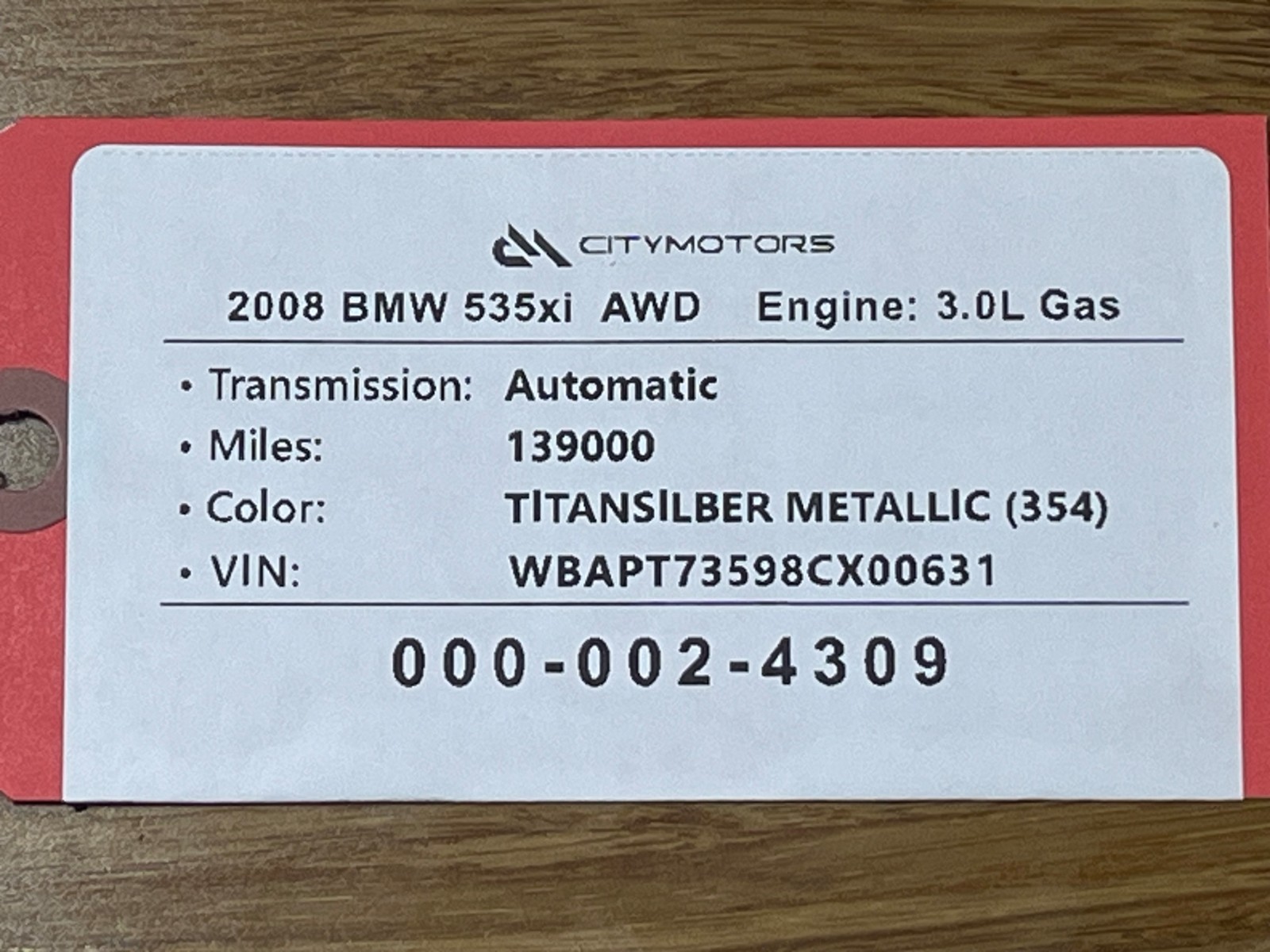 - VIN: WBAPT73598CX00631