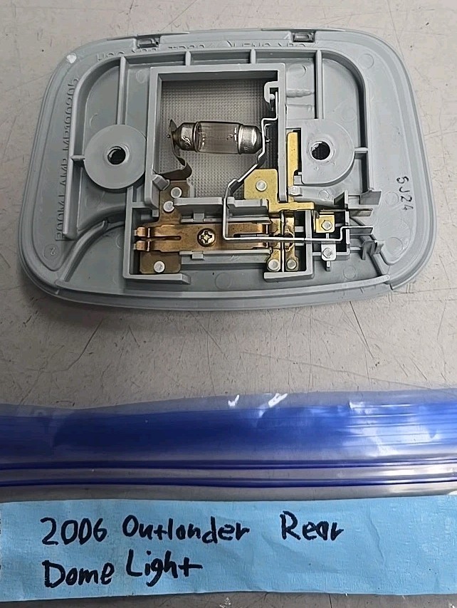 The 2006 Mitsubishi Outlander Rear Overhead Dome Light MR190205 is a replacement part specifically designed for the rear interior of Mitsubishi vehicles. This dome light assembly includes the necessary components to provide lighting in the rear of the vehicle, enhancing visibility and safety. Manufactured by Mitsubishi with the part number MR190205, this dome light is a genuine replacement part that ensures proper fit and function for the specified vehicle model.