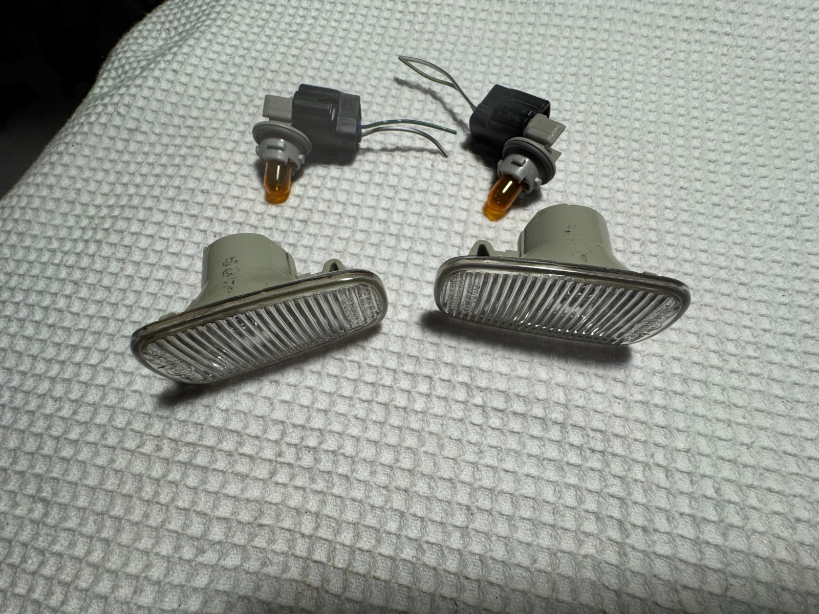 They are in overall very good to excellent and working condition showing only light wear, blemishes and use. All attachment points/clips are intact. Small portion of wiring with OEM orange bulbs included in sale. Clear lenses. Please see photograph for overall condition, color and to verify your application. Should fit multiple years of Scion Xb's. What you see in the picture is exactly what you get. Thanks.** **A small portion of wiring with bulbs are included in the sale.**