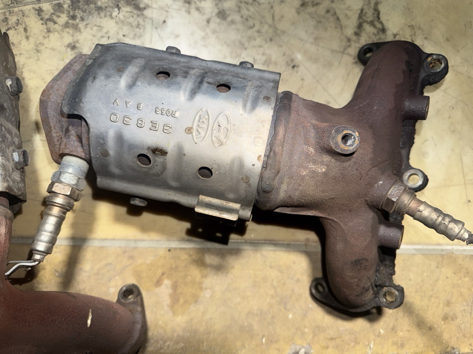 The 2007-2010 Santa Fe manifold is a specific exhaust manifold designed for Kia and Hyundai vehicles, with the reference numbers 3E830 and 3E040. No returns sold as is used parts hallow