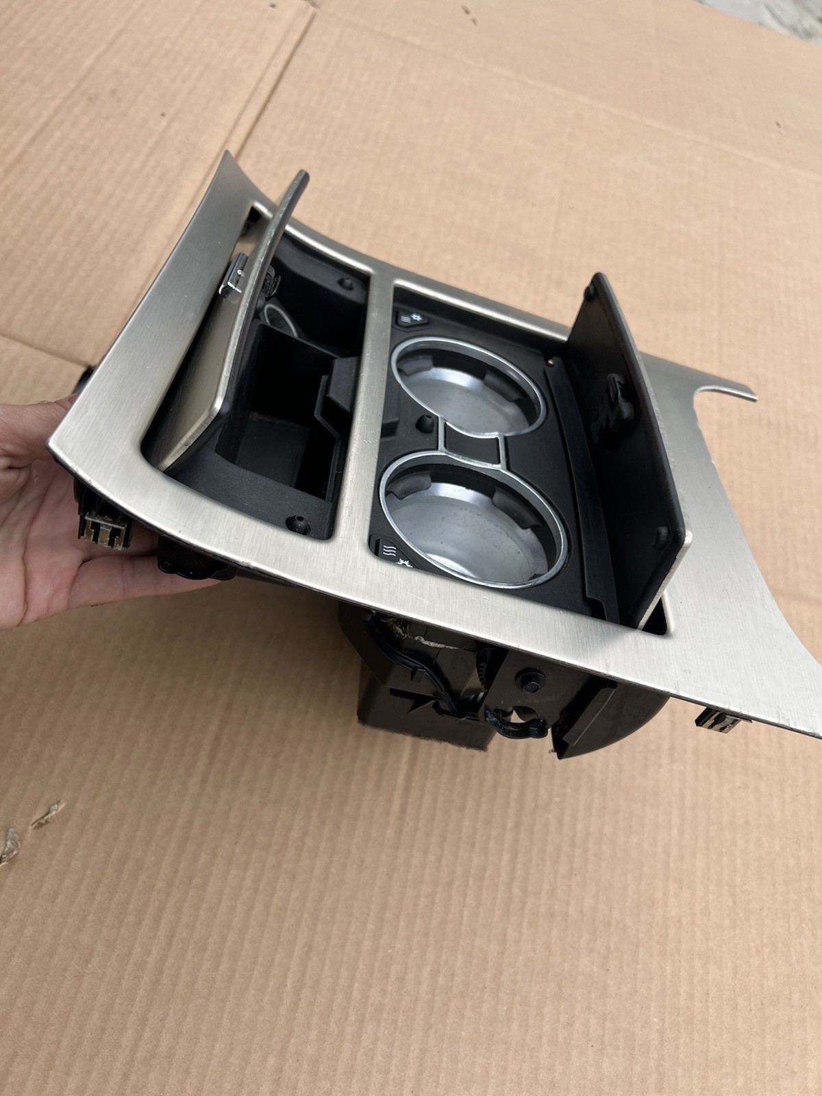 Hello Up for sale a USED cup holder came out 2012 Cadallic Escalade Hybrid Good working condition brushed aluminum surface Surface shows many scratches Heated & Cooled cup holder Shipping inside USA $19 God Bless America🇺🇸