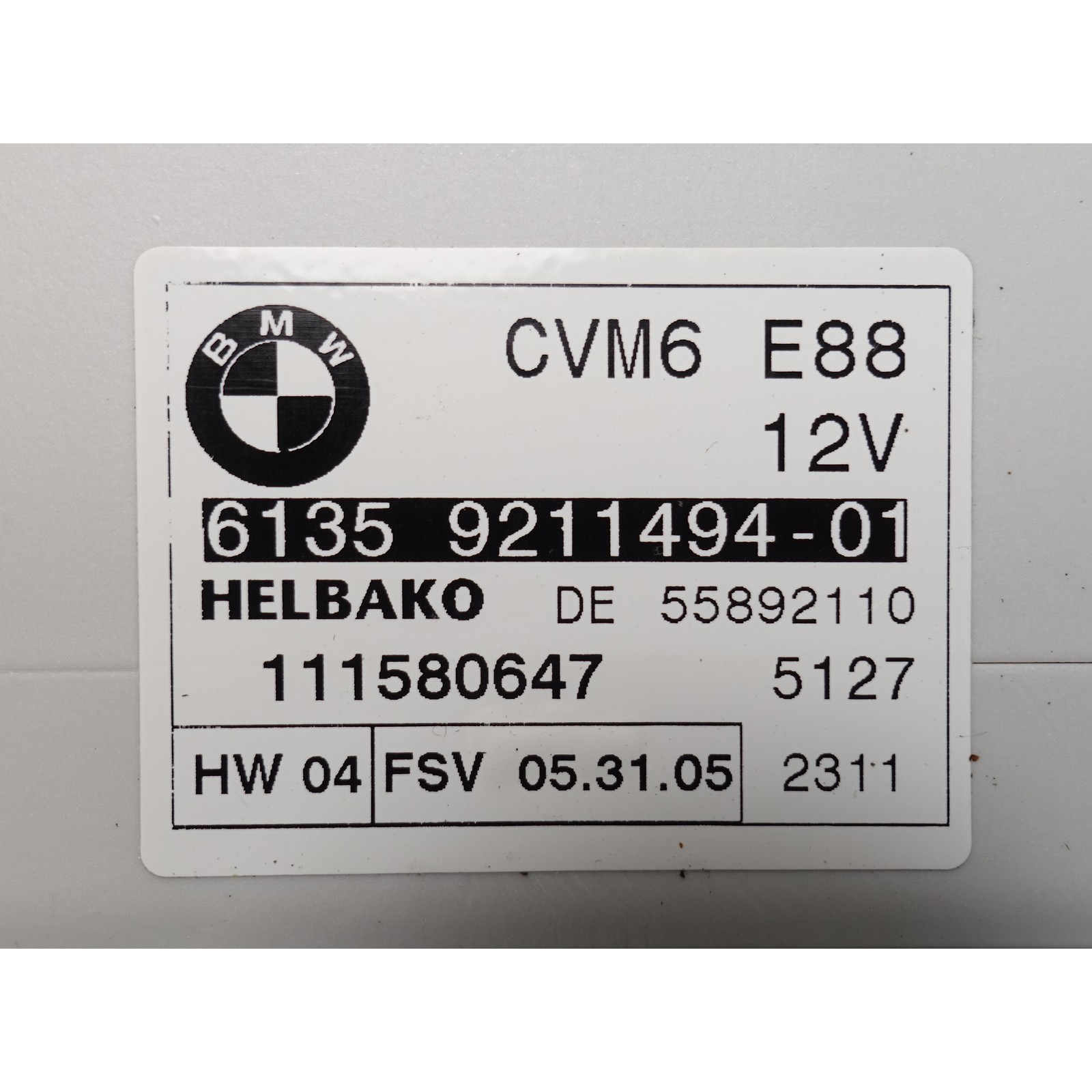 This is a used original BMW part. **Please note that the pictures are stock photos** * * * **FITS:** **1 Series E88** 2008 - 2013 128i Convertible (E88/N51) 2008 - 2013 128i Convertible (E88/N52N) 2008 - 2010 135i Convertible (E88/N54) 2011 - 2013 135i Convertible (E88/N55) * * * **OUR STORE POLICIES:** **Returns:** Items can be returned within 30 days for any reason (No Large International Returns). Items must be returned in the same condition as received. All returns must be packaged well with similar protective materials to the original packaging. Items damaged during return shipping will face up to a 50% reduction in refunded amount. Customers who return a different item than the one we sent will be reported to police and blocked from making future purchases. **Warranty:** All parts are guaranteed as described and working for 30 days, unless they are stated AS-IS condition. Warranty does not cover labor costs. Defective parts for a refund of your purchase price + shipping. We strongly discourage using BMW dealerships for service using our parts. Please find a reputable German Specialty Repair Facility. **Guarantee:** If we verify compatibility using your vehicle VIN number we guarantee proper fitment. If for any reason your purchase does not fit you will be refunded 100% of your purchase price and we will provide a return shipping label at no cost to you. Labor costs will not be reimbursed. **Shipping:** We will ship your item the same or next business day after receiving cleared payment. If payment is received before 12pm Eastern Time, your part will ship out the same day. Rarely, large or difficult to package items will take a day or two longer. UPS Ground shipments are sent WITHOUT signature required. Local pickup at our garage in Norristown, PA zip code 19401 is always welcome. **International Buyers:** Import duties, taxes, and charges are not included in the item price or shipping cost. These charges are the buyer's responsibility. Large items can not be returned once shipped out of the country. * * * **FITMENT FAQ:** **Which side does this part fit?** Left = Driver side, Right = Passenger side Reference to driver/passenger side is for left hand drive cars, so for RHD vehicles (UK/Japan/Australia, etc.) please reverse the side indicated. **What does the production month mean?** When the fitment information includes a production month this means the part will only fit some of the cars within a given model year, depending on what month the car was manufactured. Production for the "model year" usually begins in September of the previous calendar year, so if you have a 1995 model BMW it will have been produced anywhere between 9/94 - 8/95. Some cars begin their production earlier than September, such as the first year production for a new model. For example, if we say the part fits 04/95 - 99 it will fit those cars with a production date of April 1995 to 1999 model year cars. Or if we say the part fits 99 - 05/99 it will fit 1999 model year vehicles and up to and including those with a production date of 04/99. **Where do I find my car's production month?** The production month for your vehicle can be found on a sticker located on your front driver side door jamb. See the photo below for illustration:  **Will this part fit my non-US market BMW?** Fitment information provided is for US market spec vehicles only. **Are Your Airbags Recall Compliant?** I certify this airbag is not subject to recall and will be shipped in accordance with hazmat shipping requirements. **Still not sure this part will fit your car?