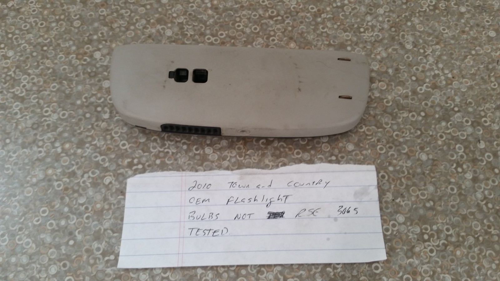 This listing is for flashlight lamp pulled from 2010 Chrysler Town & Country. Item was used in models and years indicated, but as there were MANY different options, PLEASE match part number with one of those provided in the listing prior to purchase to ensure fitment. If your part number differs or you do not know what it is, use VIN provided in listing photos to contact the dealer to verify fitment. ABOUT MY PARTS: All of my parts have been tested and are in working condition unless otherwise stated! Please keep in mind that all of my parts are used unless otherwise stated, and I do my best to clean them, some items may require a little further cleaning once received. Before my items get shipped out, they are all marked with my company stamp/stock number. To return the item and receive full refund, the stamp/stock number must be visible on the item. Thanks for looking at my listing I am looking forward to getting you fixed up and in tip top shape. If you encounter any issue at all with the merchandise you purchased, please contact me directly prior to leaving any feedback as I will go above and beyond to solve any issues you encounter. -Ron