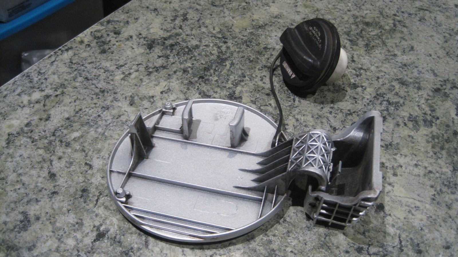 **OEM fuel door with gas cap pulled from a 2008 Hyundai Santa Fe. Official color is Sleek Bright Silver Metallic. Ships same day as purchase.** **Gas cap thrown in for free....may or may not be good.**
