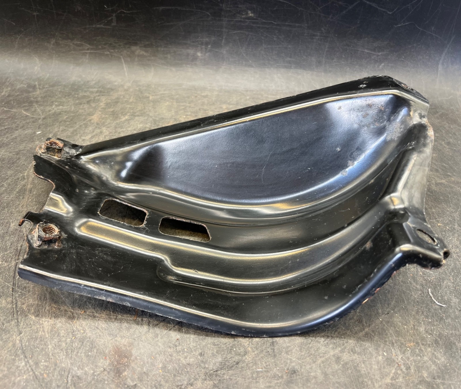 2009-2012 Toyota RAV4 Limited OEM side engine bay battery tray mount assembly, removed from vehicle VIN 2T3DF4DV7AW029571. This is a factory bracket being sold as a replacement for a damaged or rusted battery support piece. It shows normal wear from use and engine bay exposure. The black finish has scuffs, surface scratches, and some fading. There is rust and rust staining on the metal along with dirt and dust from use and storage. Solid used part for repair. See photos for full condition details before purchase. DISCLAIMER: When purchasing, please ensure you check the part numbers provided. Cross-reference these numbers for accuracy. Consult your mechanic to confirm if this part is suitable for your vehicle. Examine the pictures carefully, and verify that all bolt holes and installation components align correctly. For electrical components, be aware that programming or coding may be required.