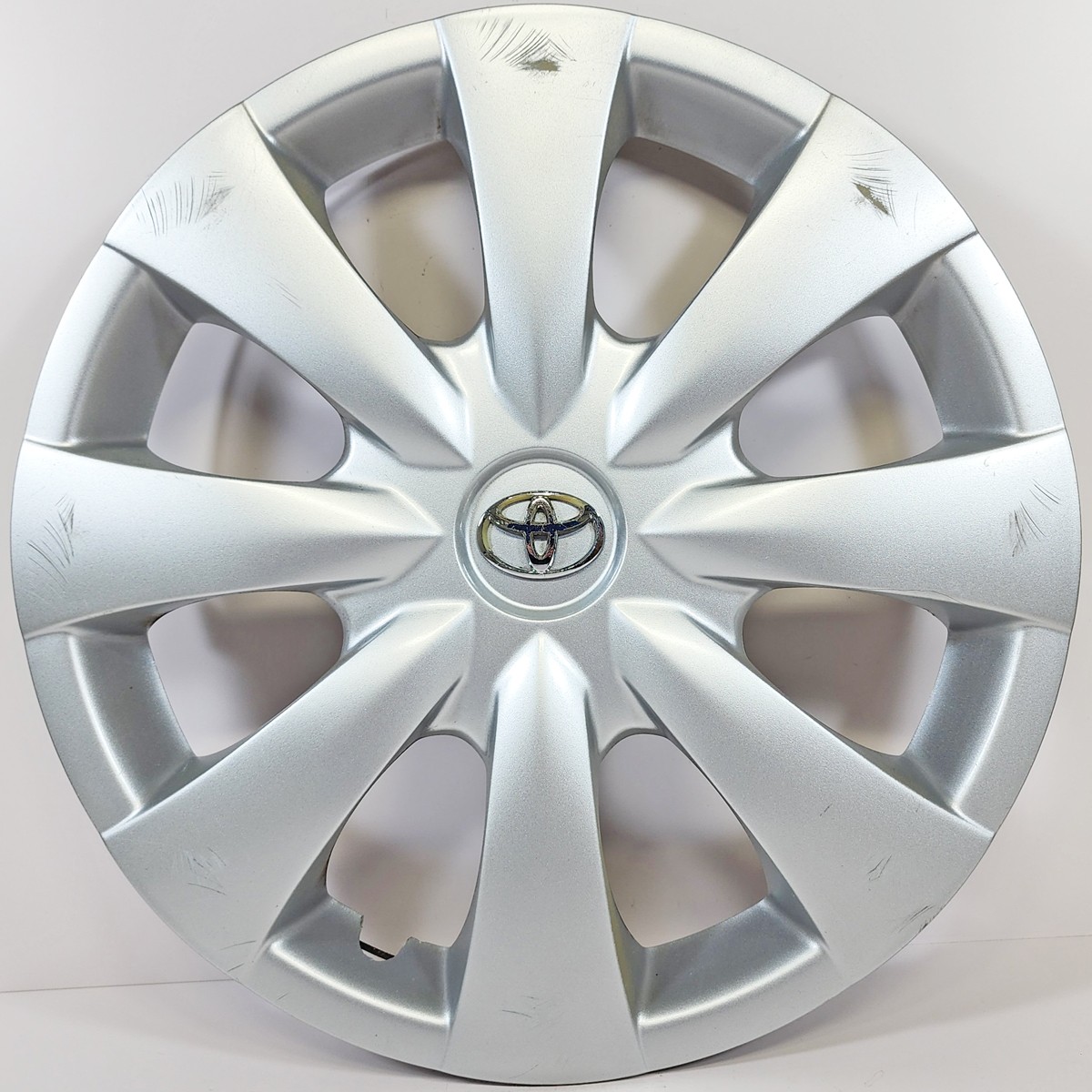 These are the 15 inchΒ 8 spoke style with the chrome Toyota logo. As you can see they are in average condition with typical wear and tear / visible curb rash / scratches etc. All legs on the back are in good condition and there are no cracks. The price quoted is for the complete set of 4 shown. They are the actual ones you will get. β TERMS: By purchasing this set of hubcaps you are agreeing in advance that you have looked at the pictures and read the entire description plus the "Item Specifics" section. You also agree that if you decide to return them you will be responsible for all shipping costs. β - SKU T61147C #2 SET - Size 15" - Quantity (1) Set of 4 - Application π 2009-2013 Toyota Corolla Base & LE Models - Finish Silver With Chrome Toyota Logo - Manufacturer Toyota - Condition Used - Has Typical Wear And Tear / Noticeable Curb Rash / Scratches etc. - Installation Snap On  Shipping Timing and Pricing  We package your item carefully, to help guarantee that it arrives in perfect condition. Contact us if you have any problems and we will do everything we can to help you. We use FedEX, UPS or USPS for most shipments. Most orders are shipped out of our Illinois warehouse. However, we may occasionally need to ship your item from another location, either due to stocking issues or if we feel it will speed up delivery to your address. This sometimes means changing the shipping method. Your shipping cost will not be affected. Most orders are shipped within 24 hours after payment is made. We ship Monday through Friday. ### SALES TAX Illinois residents are required to pay 10.00% sales tax. ### RETURNS We offer refunds, store credit, or exchange on all items. Our policies are as follows: - The item must be returned in the same condition it was received. - Be sure to purchase full insurance for your item before shipping it back! We may not be able to issue store credit or exchange your item if it is damaged when being shipped back to us. - Buyer is responsible for all shipping costs on returned items. ABOUT US Suburban Wheel Cover has been serving the automotive industry since 1980. We strive to treat our customers the way we would like to be treated. Our goal is to serve our customers with great products at affordable prices. We will do everything we can to meet your needs. Why You Should Buy From Us We are a real, tax-paying business in a commercial location with several employees. This is our job and we care about what we do. We keep real business hours. We post our phone numbers. You can feel very confident that we will complete each and every transaction. We are here and we are ready for you. Thank you for the opportunity! Please contact us if you have any questions: - Hours: We are open M-F from 8:00 AM to 5:00 PM Central Time. * * *  Sell Smarter with Kyozou. Inventory and Ecommerce Management