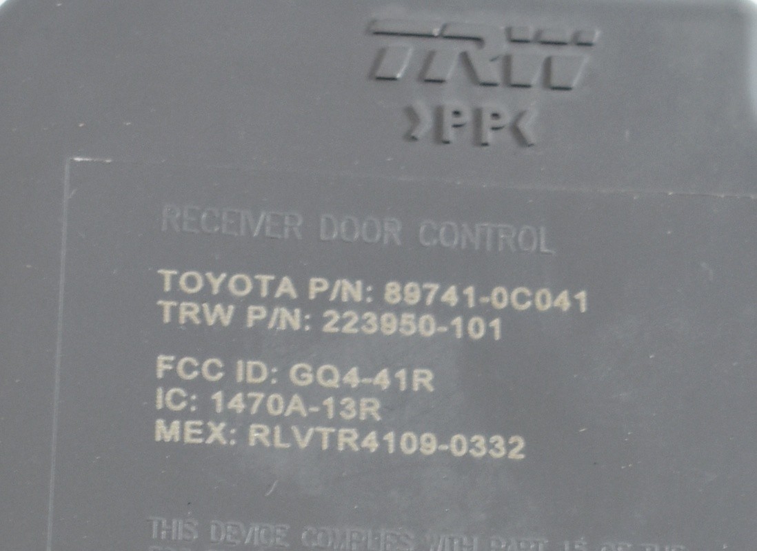 **2009 2010 2011 2012 2013 2014 2015 2016 2017 2018** **Toyota Tundra 2009–2018 OEM Keyless Entry Control Receiver Module – Part No. 89741‑0C041** Toyota 89741-0C041 Door Control Receiver MATCH PART NUMBER TO ENSURE FITMENT **PART IS IN GOOD USED CONDITION** **YOU WILL RECEIVE THE PART PICTURED** **E1F04**