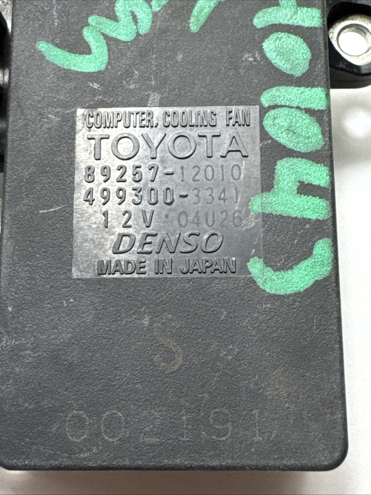 Used Cooling Fan Control Module Removed from wrecked 2017 Toyota Corolla Part # 89257-12010 Please match part # above with your own part. No international Shipping