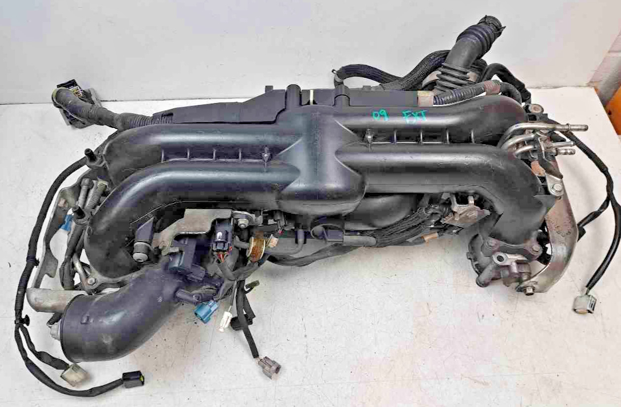 Subie Recycler, Inc. Up for sale is this Subaru factory OEM complete intake manifold with harness, TGV's, injectors, fuel rails/lines, throttle body, turbo inlet, sensors ETC. Intake Manifold Subaru P/N: 14011AB900. This unit was removed from a 2009 Forester XT Turbo model. Online research says this unit will fit 2008 Subaru WRX Models, 2009 Subaru Forester XT Turbo Models. This is a used unit that may show cosmetic scratches and signs of use but is in working condition as it came off a running car.