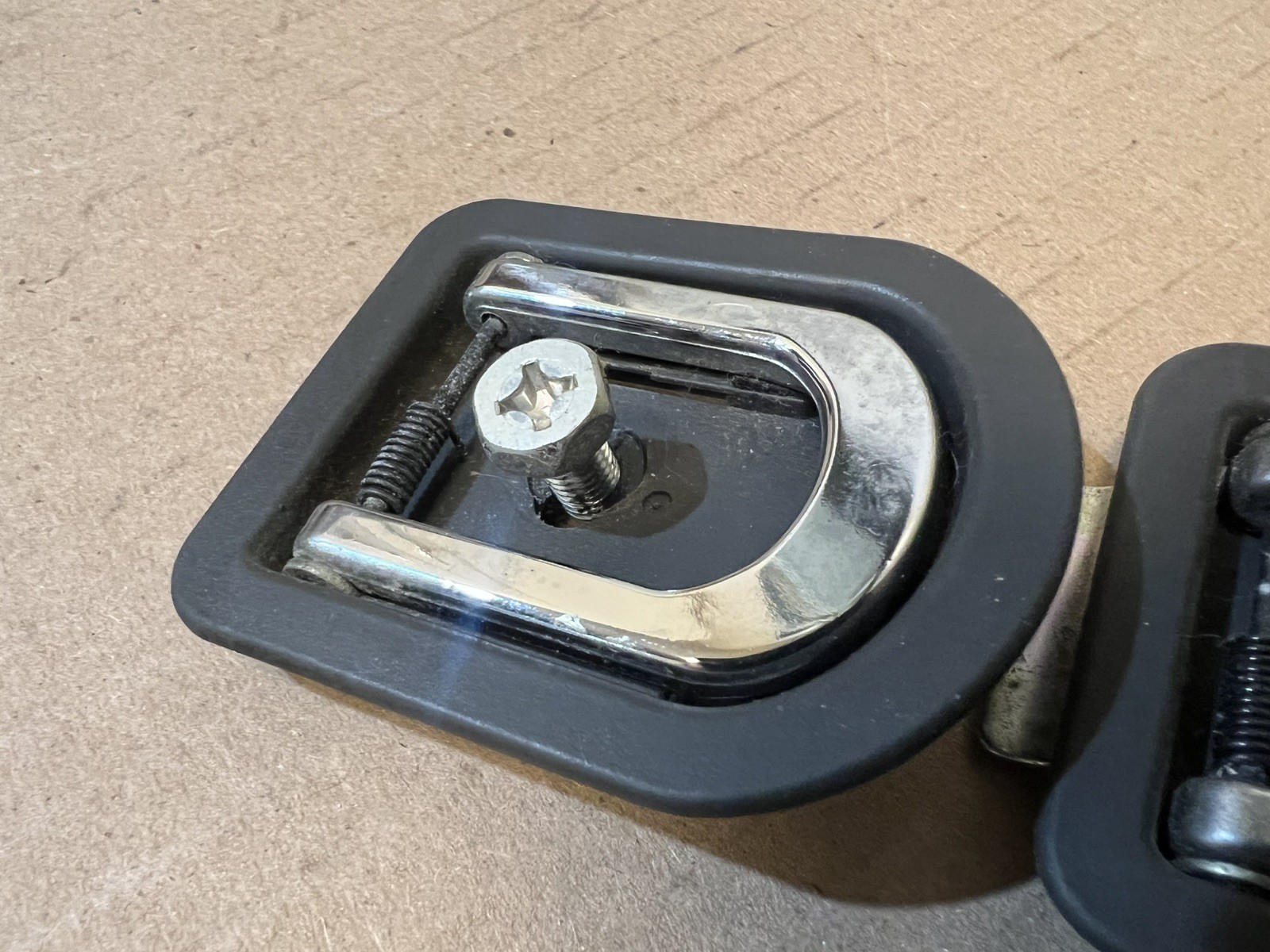 2010 2011 2012 2013 2014 Subaru Outback Rear Hatch Cargo Net Tie Down Hook Anchor Luggage OEM Set. You are getting a set of 2 as pictured with mounting bolts. Used with wear from normal use but overall good condition. Both springs work on hooks. Comes with mounting bolts but do not come with plastic bolt covers. These are the rear hooks that go on the rear lower interior cargo area. These hold down the inside rear quarter panel trim and are used to hold cargo net. Please look at all photos so you get correct parts and are 100% satisfied with the condition of the items. Free shipping to the lower 48 states.