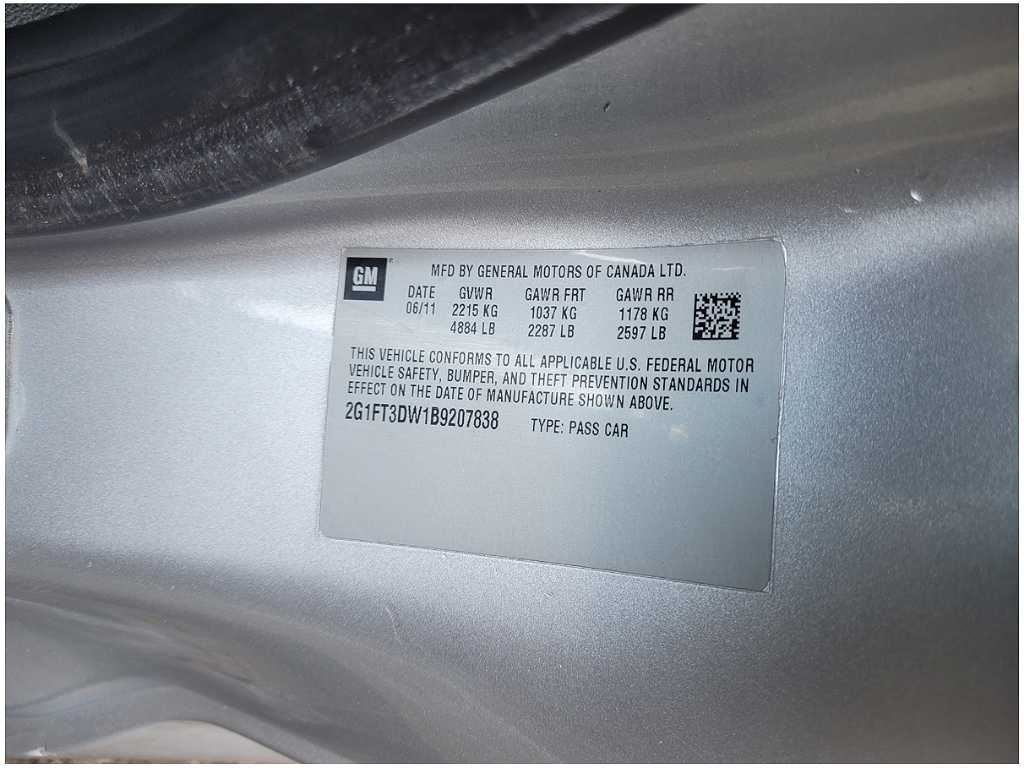 - VIN #: 2G1FT3DW1B9207838