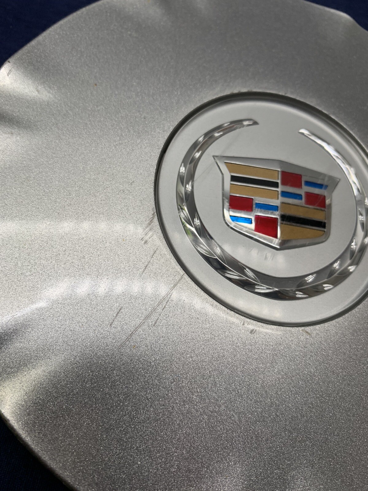 **READ THE DESCRIPTION CAREFULLY FIRST BEFORE YOU BUY!!!!** 2010-2016 Cadillac SRX OEM Silver 18" 7 DOUBLE Aluminum Wheel Center Cap THIS CENTER CAP FITS THE 18 INCH 7 DOUBLE SPOKE ALUMINUM WHEEL IN THE LAST PICTURE. \*This center fits exactly what wheel or wheels listed and pictured and I guarantee ONLY that. Note that vehicles come with more than one wheel in the same model year. Be sure you are purchasing the correct product. MATCH THE PART NUMBER! YOU ARE PURCHASING ONE CENTER CAP ONLY. THIS IS A FACTORY ORIGINAL CENTER CAP. THIS CENTER CAP IS IN GOOD USED CONDITION WITH MINOR SCRATCHES. THE CLIPS ARE INTACT AND IN GOOD CONDITION. TO AVOID COSTLY RETURNS, PLEASE CONFIRM PART NUMBERS WITH MY LISTING AND THE CAP OR CAPS THAT ARE ON YOUR VEHICLE. ALSO, BEFORE LEAVING FEEDBACK, IF THERE ARE ANY PROBLEMS OR CONCERNS, PLEASE CONTACT ME FIRST TO RESOLVE ANY ISSUES. THANK YOU.