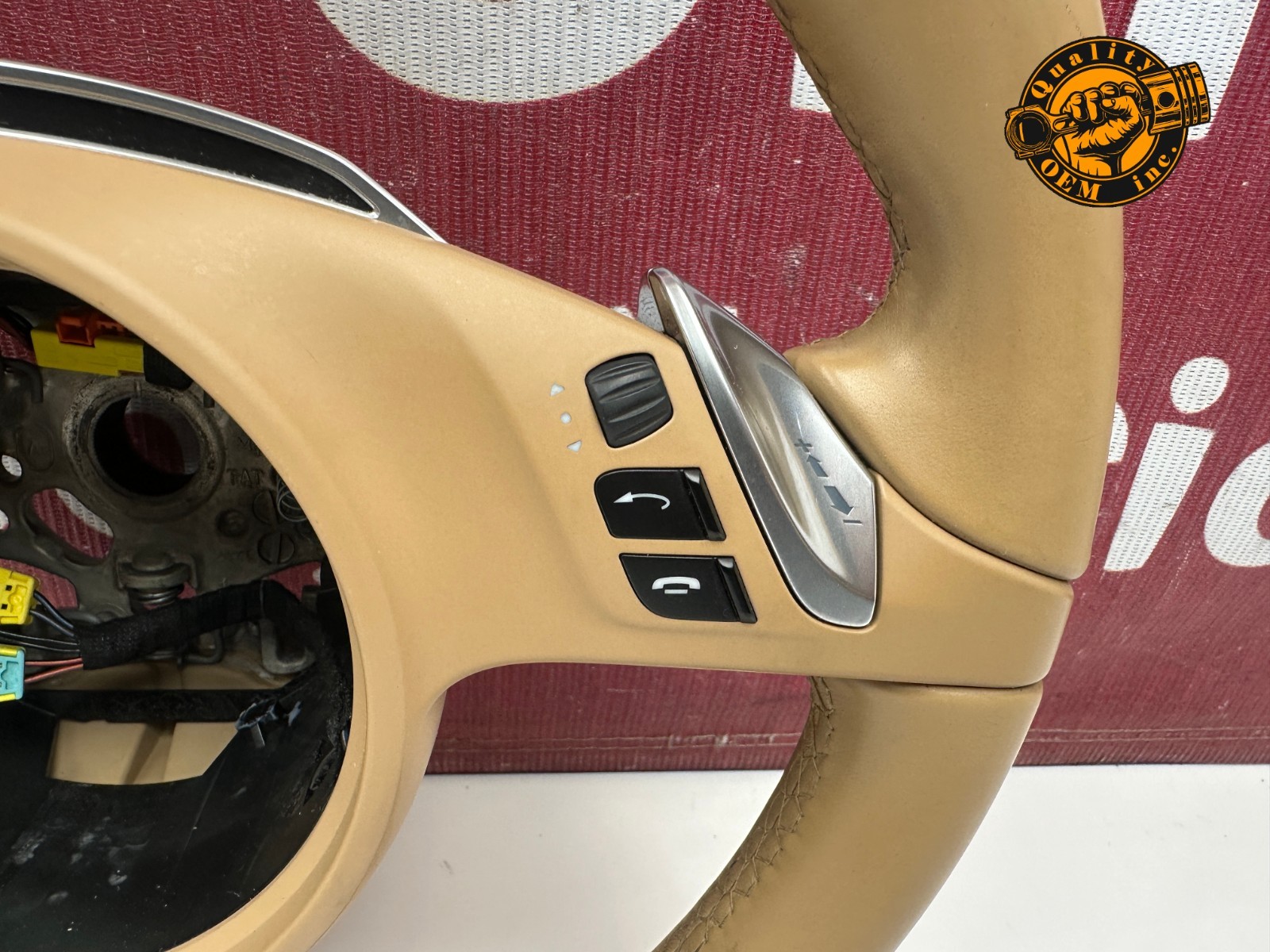 2010-2016 PORSCHE PANAMERA PDK STEERING WHEEL LEATHER (BEIGE) OEM 48 kmiles