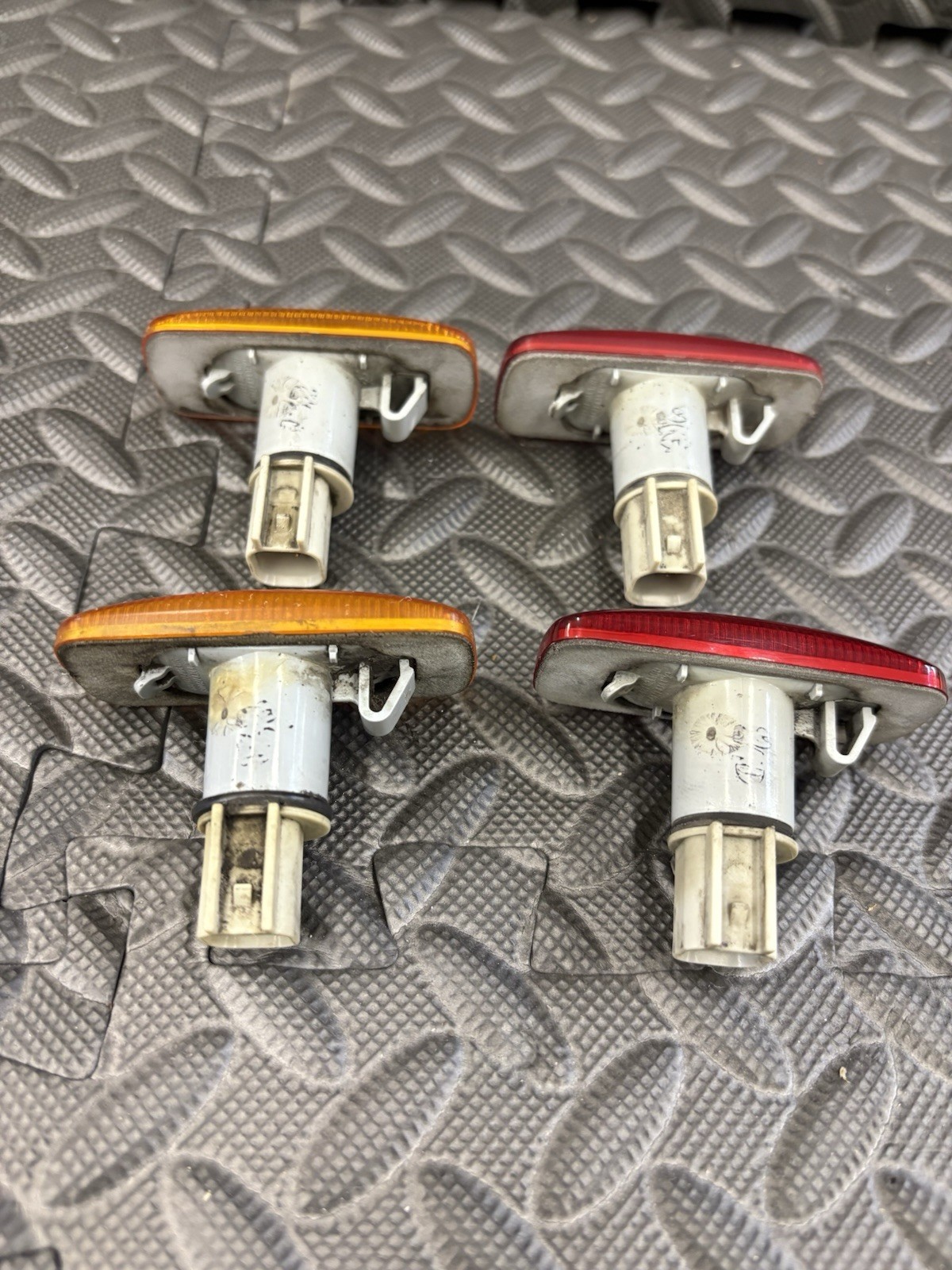 OEM Mopar set of 4 side marker lights removed from a Dodge Ram dually bed. Includes: β’ 2x Amber front marker lights (68042143AA) β’ 2x Red rear marker lights (68042140AA) These are genuine Mopar parts (not aftermarket) and will fit 2010β2018 Ram 3500 dual rear wheel trucks. π¦ Condition: Used, good working order. Some normal wear/dust from use, see photos for exact condition. β Direct plug-and-play replacement. β OEM fit and finish. Perfect for replacing cracked or missing clearance lamps on your dually bed. βΈ» Item Specifics: β’ Brand: Mopar (OEM Chrysler Dodge Ram) β’ Manufacturer Part Numbers: 68042140AA (Red), 68042143AA (Amber) β’ Placement on Vehicle: Left, Right, Front, Rear β’ Lens Color: Amber + Red β’ Fits: 2010β2018 Ram 3500 Dual Rear Wheel (Dually