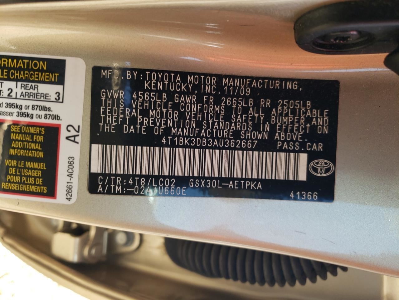 - VIN #: 4T1BK3DB3AU362667