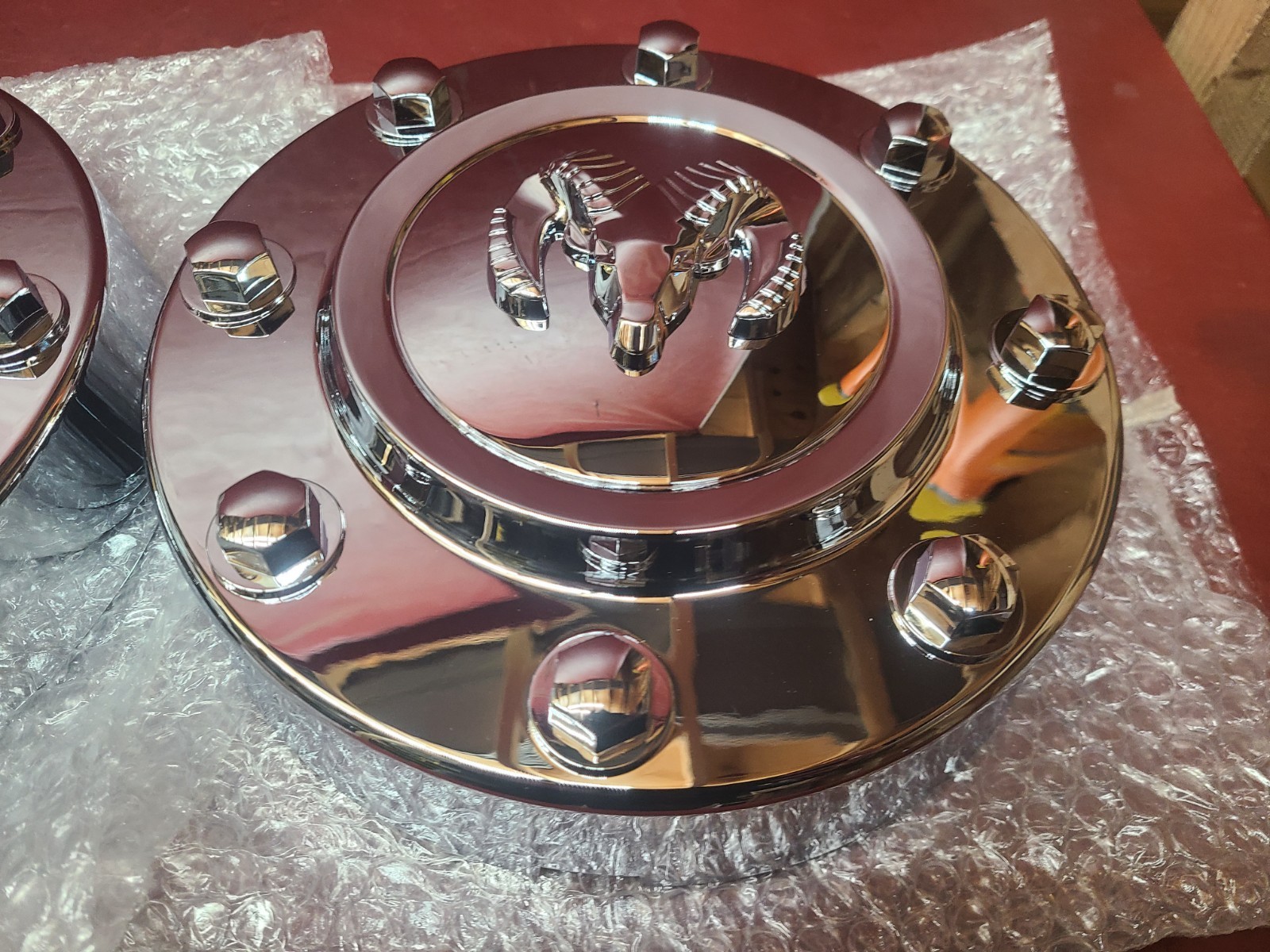 PAIR of reproduction Dodge FRONT 8 lug dually center caps. See pictures for more detail.