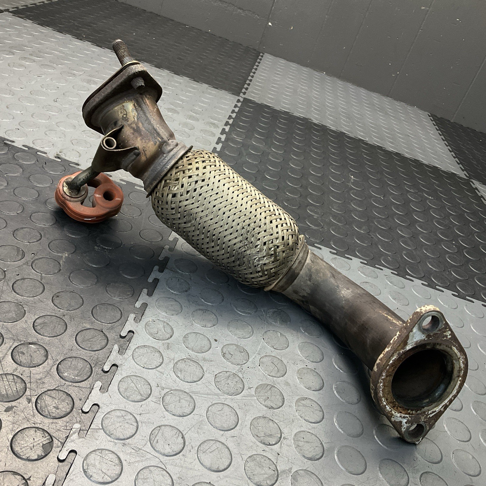 Up for sale 2013 Kia Optima Hybrid Exhaust Flex Pipe W/ Hanger OEM. In good condition. May have minor/scuffs. The 2011-2015 Kia Optima Hybrid Exhaust Flex Pipe with Hanger OEM is a high-quality part designed specifically for Kia vehicles. Made of durable mild steel, this flex pipe comes with a gasket, mounting hardware, and a hanger included. It is designed to provide a secure and reliable connection for your exhaust system, ensuring optimal performance and longevity. This OEM product is a perfect fit for Kia Optima Hybrid owners looking to replace or upgrade their exhaust flex pipe with genuine Kia parts.