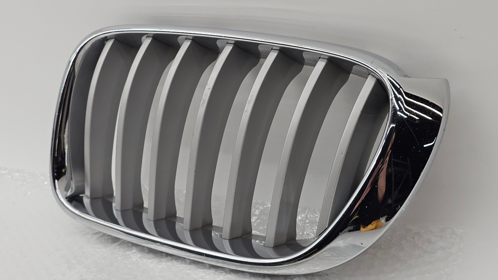 **OEM Left Driver Side Upper Kidney Grille Chrome** off from 2015 BMW F25 X3 - **Compatibility:** Buyer is responsible to ensure compatibility Please pay attention to this description, please make sure you match the part number with your old item before purchasing our item. All of the parts were taken off of the donor cars with great care. It is the buyer’s responsibility to match the item / part number before buying any item. If you are not sure about part compatibility, call your local dealer for reference. Please be sure to compare part number before buying. Some electronics items may need to be reprogrammed to function, an electronic item may not function without the proper programing. - **Warranty:** All parts come with a 30-day warranty Warranty does not cover ANY labor costs, programming, and other expenses Please keep in mind that you are buying a used part and savings go along with some risks PLEASE INSPECT ALL PICTURES THOROUGHLY AND MAKE SURE YOU ARE OK WITH THE CONDITION. WHAT YOU SEE PICTURED IS WHAT YOU'LL GET! - **Shipping:** All sold items are only shipped immediately after payment has cleared **GZ Autoparts** is not responsible for any shipping delays caused by carrier