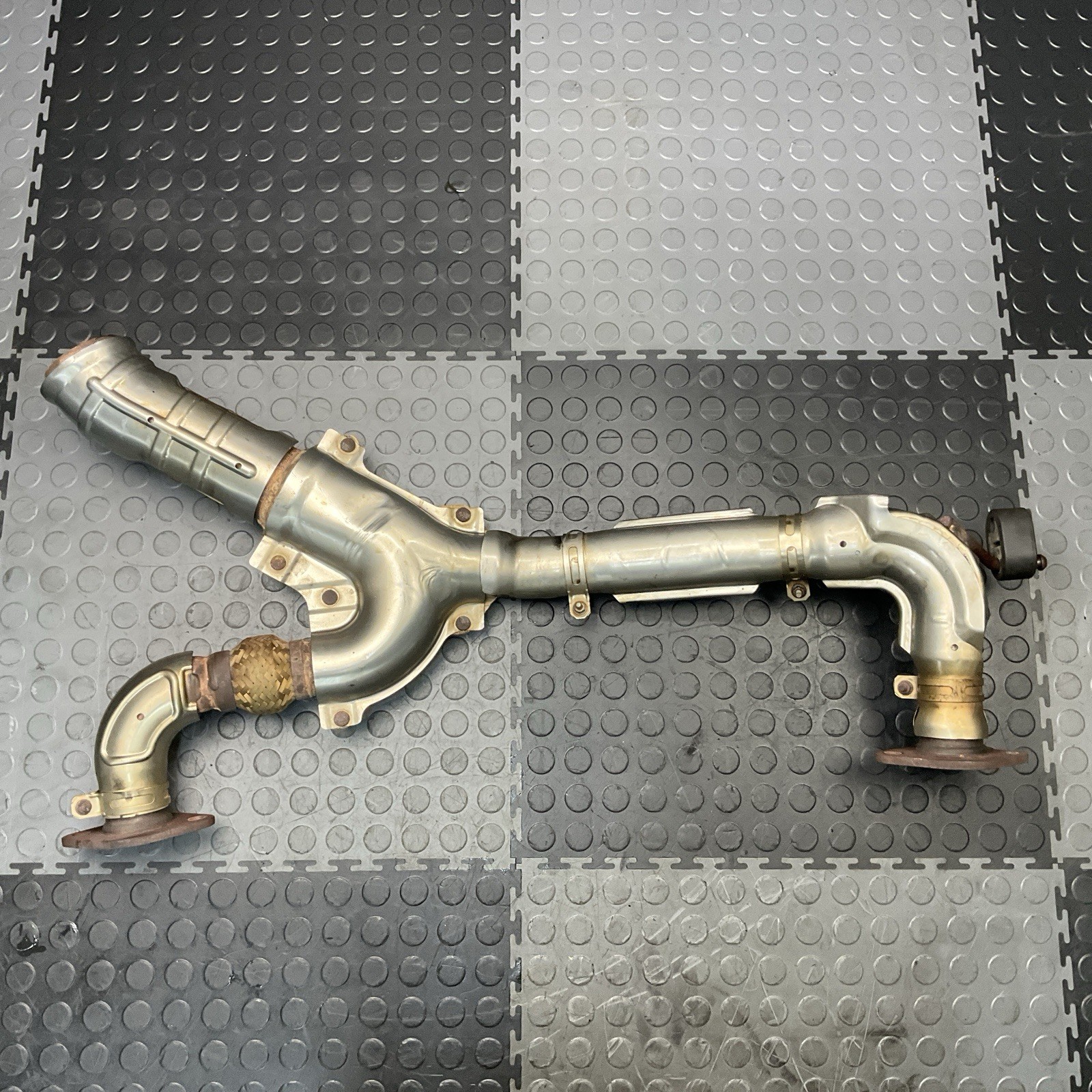 Up for sale 2016 Infiniti QX80 Center Middle Muffler Resonator Pipe OEM. In good condition. May have minor/scuffs. The 2011-2017 Infiniti QX80 Center Middle Muffler Resonator Pipe is an OEM part designed specifically for Infiniti vehicles. Made of aluminum and steel, this brown-colored muffler assembly is positioned in the lower center area of the vehicle's exhaust system. This resonator pipe helps to reduce engine noise and create a smoother exhaust flow, ensuring optimal performance and efficiency for the Infiniti QX80 model years 2011-2017.