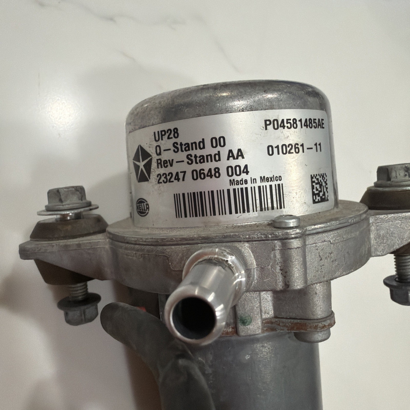 The 2011-2023 Dodge Charger 3.6L Brake Booster Vacuum Air Pump OEM is a durable vacuum pump made specifically for Dodge vehicles. Manufactured in Mexico, this pump is designed to fit the Dodge Charger model with a 3.6L engine. It comes with the manufacturer part number 04581485AE and includes a warranty. This vacuum pump is a genuine OEM part that ensures proper air and fuel delivery for optimal vehicle performance.