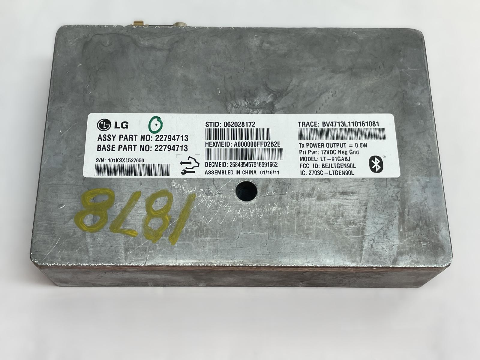 CHECK WITH 74 AUTO OR DEALER PRIOR TO PURCHASE IF UNSURE OF FITMENT.** **ITEM IS USED AND MAY SHOW SIGNS OF WEAR. INSPECT ALL PICTURES AND ASK ALL QUESTIONS PRIOR TO PURCHASE.** **SHIPPING WITHIN THE CONTINENTAL US ONLY. ALL SALES TO AK AND PR ARE FINAL.** **NO INTERNATIONAL SHIPPING** ### Interchange Information: ### Also fits the following models: **AVALANCHE 15002011 \- 2011Communication; (OnStar, opt UE1), (center dash, behind radio), w/voice recognition (opt UPF)** **ESCALADE EXT2011 \- 2011Communication; (OnStar, opt UE1), (center dash, behind radio), w/voice recognition (opt UPF)** **ESCALADE ESV2011 \- 2011Communication; (OnStar, opt UE1), (center dash, behind radio), w/voice recognition (opt UPF)** **ESCALADE2011 \- 2011Communication; (OnStar, opt UE1), (center dash, behind radio), w/voice recognition (opt UPF)** **SILVERADO 1500 PICKUP2011 \- 2011Communication; (OnStar, opt UE1), (center dash, behind radio), w/voice recognition (opt UPF)** **SILVERADO 2500 PICKUP2011 \- 2011Communication; (OnStar, opt UE1), (center dash, behind radio), w/voice recognition (opt UPF)** **TAHOE2011 \- 2011Communication; (OnStar, opt UE1), (center dash, behind radio), w/voice recognition (opt UPF)** **YUKON2011 \- 2011Communication; (OnStar, opt UE1), (center dash, behind radio), w/voice recognition (opt UPF)** **SIERRA 1500 PICKUP2011 \- 2011Communication; telematics (OnStar, opt UE1), (center dash, behind radio), w/voice recognition (opt UPF)** **SIERRA 2500 PICKUP2011 \- 2011Communication; (OnStar, opt UE1), (center dash, behind radio), w/voice recognition (opt UPF)** **SIERRA 3500 PICKUP2011 \- 2011Communication; (OnStar, opt UE1), (center dash, behind radio), w/voice recognition (opt UPF)** **SILVERADO 3500 PICKUP2011 \- 2011Communication; (OnStar, opt UE1), (center dash, behind radio), w/voice recognition (opt UPF)** **SUBURBAN 15002011 \- 2011Communication; (OnStar, opt UE1), (center dash, behind radio), w/voice recognition (opt UPF)** **SUBURBAN 25002011 \- 2011Communication; (OnStar, opt UE1), (center dash, behind radio), w/voice recognition (opt UPF)** **YUKON XL 15002011 \- 2011Communication; (OnStar, opt UE1), (center dash, behind radio), w/voice recognition (opt UPF)** **YUKON XL 25002011 \- 2011Communication; (OnStar, opt UE1), (center dash, behind radio), w/voice recognition (opt UPF)** **ACADIA2011 \- 2011Communication; (LH quarter wheel well), w/voice recognition (opt UPF)** **ENCLAVE2011 \- 2011Communication; (LH quarter wheel well), w/voice recognition (opt UPF), ID 22794713** **ENCLAVE2011 \- 2011Communication; (LH quarter wheel well), w/voice recognition (opt UPF), ID 22737855** **TRAVERSE2011 \- 2011Communication; (LH quarter wheel well), w/voice recognition (opt UPF)** **SIERRA DENALI 15002011 \- 2011Communication; (OnStar, opt UE1), (center dash, behind radio), (voice recognition, opt UPF)** **SIERRA DENALI 25002011 \- 2011Communication; (OnStar, opt UE1), (center dash, behind radio), (voice recognition, opt UPF)** **SIERRA DENALI 35002011 \- 2011Communication; (OnStar, opt UE1), (center dash, behind radio), (voice recognition, opt UPF)** **EXPRESS 1500 VAN2011 \- 2011Communication; (OnStar, opt UE1), (LH dash), w/voice recognition (opt UPF)** **EXPRESS 2500 VAN2011 \- 2011Communication; (OnStar, opt UE1), (LH dash), w/voice recognition (opt UPF)** **EXPRESS 3500 VAN2011 \- 2011Communication; (OnStar, opt UE1), (LH dash), w/voice recognition (opt UPF)** **SAVANA 1500 VAN2011 \- 2011Communication; (OnStar, opt UE1), (LH dash), w/voice recognition (opt UPF)** **SAVANA 2500 VAN2011 \- 2011Communication; (OnStar, opt UE1), (LH dash), w/voice recognition (opt UPF)** **SAVANA 3500 VAN2011 \- 2011Communication; (OnStar, opt UE1), (LH dash), w/voice recognition (opt UPF)** **74 Auto is the nation's largest repairable vehicle dealer!** **Questions? The utmost care is taken in dismantling, testing, and cleaning of the parts you have purchased. If a problem should occur, the following procedure shall apply:** 1. All parts come with a 90-day limited warranty unless otherwise stated. 2. All engines are warrantied against cracked cylinder blocks or heads, bad cam and crankshafts, and excessive smoking. 3. The used engine purchased must have new oil and filter **_upon installation and every 3,000 miles thereafter, and proof must be maintained_**. Oil leaks, such as gaskets and seals, are not covered under warranty, Replace recommended parts, then follow up with the installer to thoroughly check other parts which may have contributed to the original engine failure, Your used engine should begin operation under the same conditions as the original engine. It is recommended that the parts listed below be replaced: - Spark Plugs - Thermostat - Air/Fuel/Oil Filter - PCV Valve - Plug Wires - Water Pump - Oil Cooler/Sending Unit - Fuel Injectors It is also recommended that you also replace or thoroughly test and inspect the following: - Radiator Cap - All Hoses and Belts - High Tension Wires On all vehicles with engine oil coolers the engine oil cooler and lines must be inspected and flushed or replaced to protect your warranty. 4. This warranty does not cover attached items or accessories (such as but not limited to water pump, fuel pump, carburetor, fuel injectors, distributors, computers, etc.) 5. Transmissions are warrantied to be in good working order against slippage or shifting failures. 6. _**Transmissions must have new seals, filter kit & oil installed upon installation into vehicle**_. Transmission coolers and lines must be flushed, cleaned and inspected. All sensors, wiring, cables, brackets and/or diagnostics and computer function is the responsibility of the installer. Failure to do so will result in voided warranty. 07. Vehicles which have 74 Auto LLC engines or transmissions installed must have proper capacity cooling systems and be in good working condition. 08. _**Proper oil levels and cooling levels must be maintained at all times for warranty to be valid**_. 09. Warranty is void