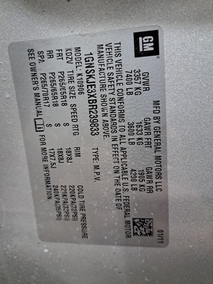 - VIN #: 1GNSKJE3XBR239833