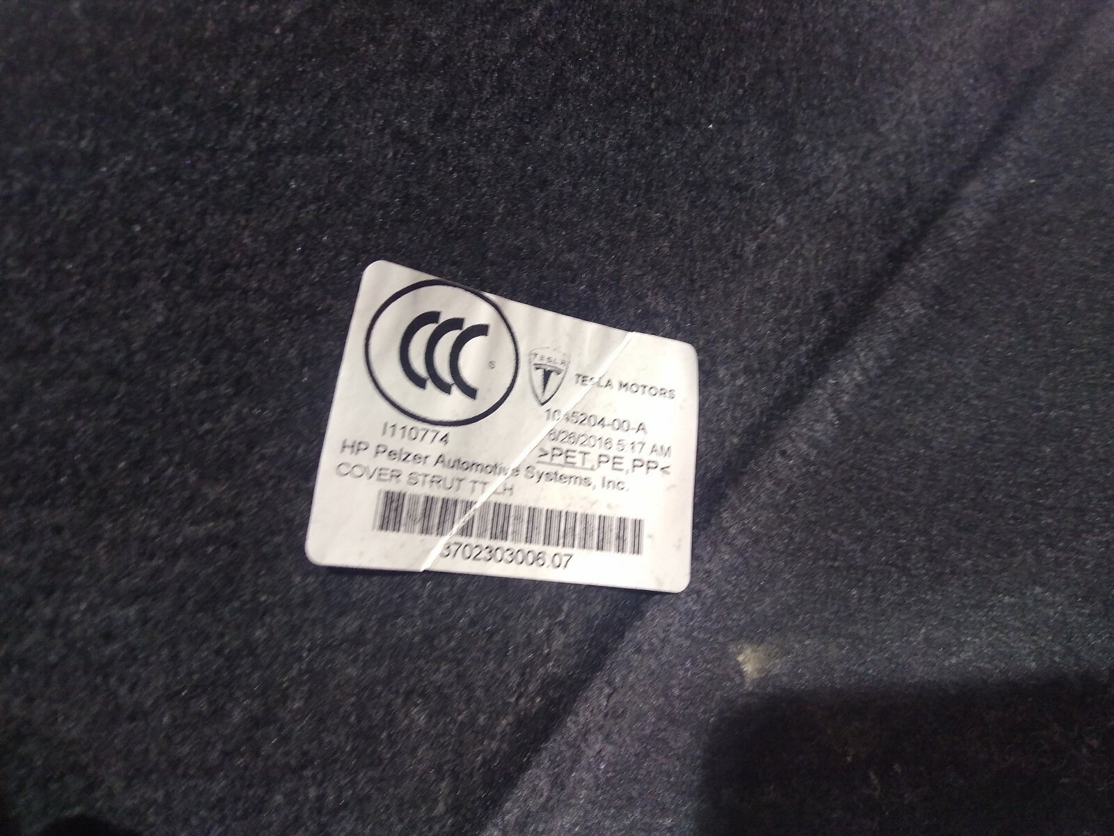 ⚡2012 - 19⚡TESLA S REAR LEFT SIDE TRUNK FRAME RAIL CARPET TRIM OEM⚡1045204-00-A⚡