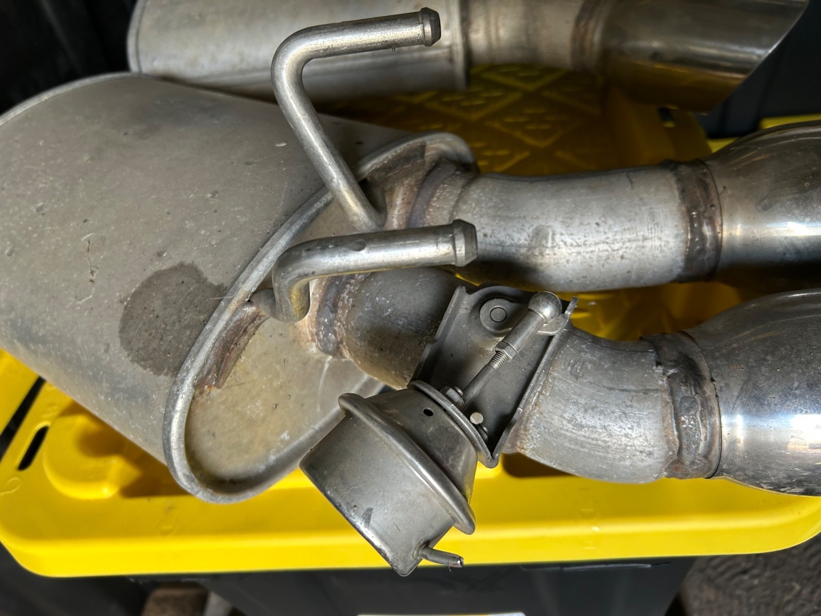 The 2012-2015 Camaro SS ZL1 Dual Exhaust Quad Tip Mufflers are a high-quality exhaust system kit designed for precision and performance. Featuring a dual exit design, this system offers a sleek and powerful look for your vehicle. With 100% accuracy of fit, you can trust that these mufflers will seamlessly integrate into your Camaro's existing system, ensuring optimal functionality and sound. Elevate your driving experience with this top-of-the-line exhaust upgrade. Came off a 2013 zl1 oem
