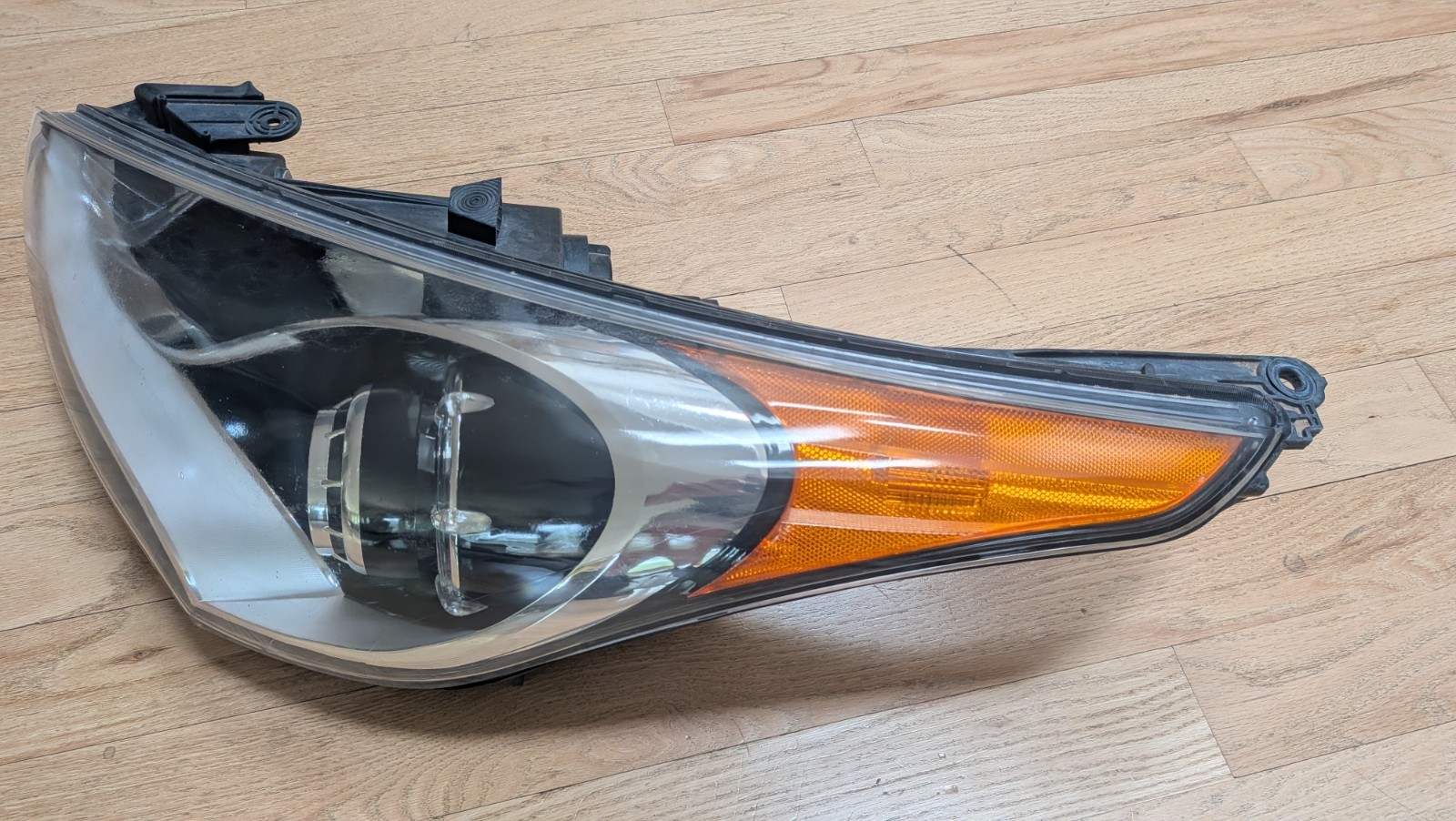 2012-2017 Hyundai Veloster Left Side Headlights with LED Strip Used in good working pre-owned condition. The lens will need to be refinished. All mounting tabs are intact. The assembly comes complete with bulbs. Please see actual photos included in this listing or ask questions before purchasing as needed. Item ships within one business day.