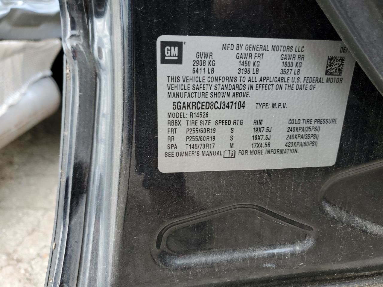 - VIN #: 5GAKRCED8CJ347104