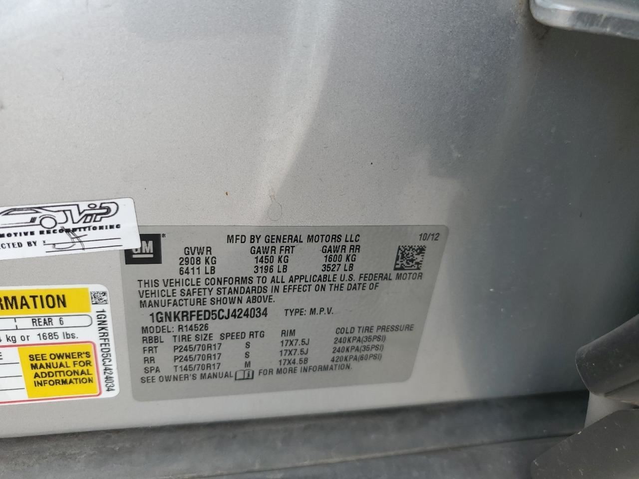 - VIN #: 1GNKRFED5CJ424034